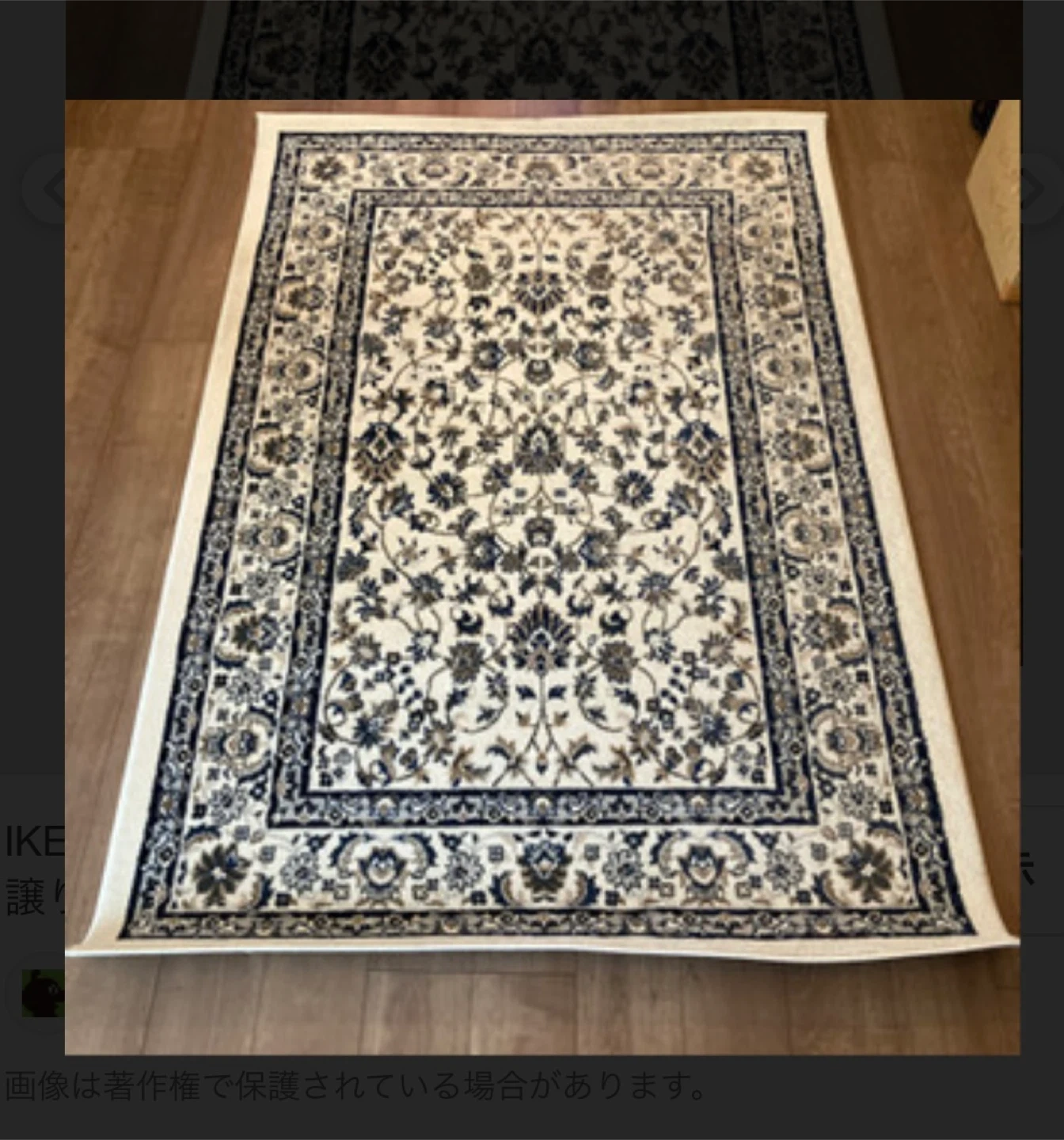 イケアのラグです。 ・ブランド:イケア ・商品名:VALLOBY ・サイズ:133cm×195cm ・色:白、青、茶色 ・状態:購入後ずっと使っているため、使用感はあります。 リビングのソファの下に置いてました。 引っ越すので、このタイミングでどなたかにお譲りします。 中古品であることご了承ください
