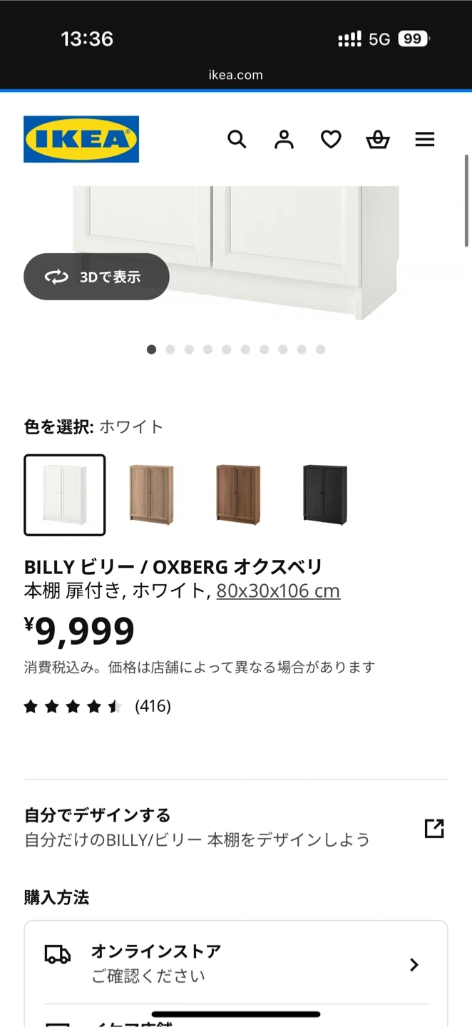 イケア BILLY/OXBERG 本棚 収納 ホワイト