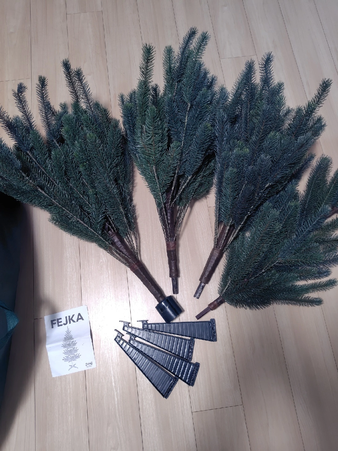 イケアのクリスマスツリーです。 【情報】 ブランド:イケア 商品名:FEJKA サイズ:高さ約180cm (71") 【状態】 10年ほど使用しました。 1年に1回の使用で収納してあるため、多少匂います。使用前に良く干して使用ください。 足が1本壊れたため、瞬間接着剤で修理しています。(写真参照) 【付属品】 取扱説明書、収納バッグ 状態についてご了解いただける方、よろしくお願い致します。