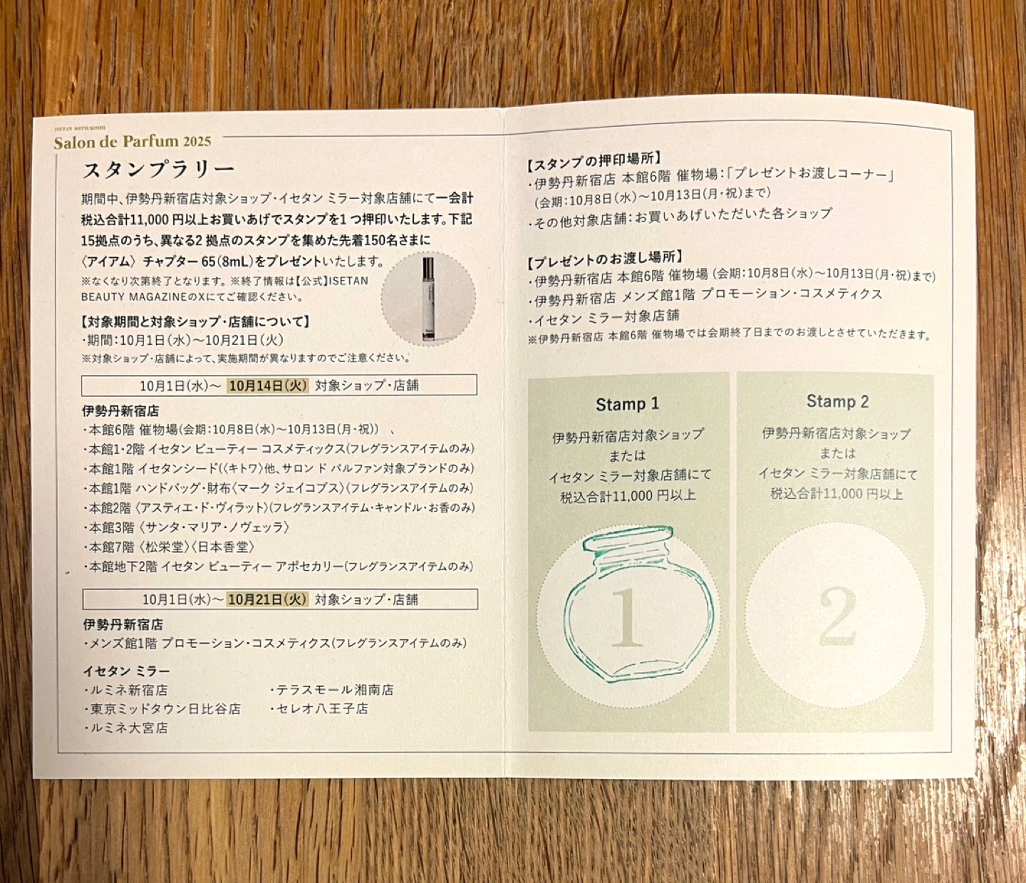 イセタン サロンドパルファン2025 ショッピングパスポート スタンプ1個押印済です スタンプ2個でノベルティプレゼント