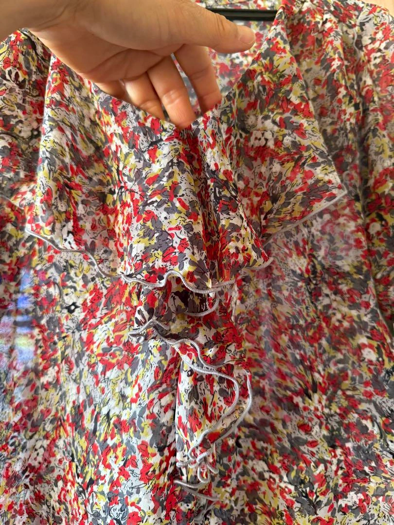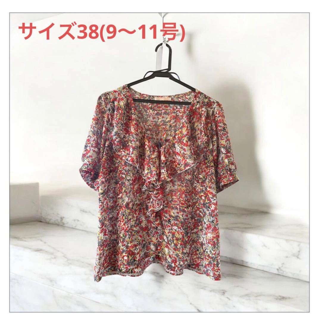 イトキン フリル付きチュニック 半袖 size38です。 (日本では9〜11号相当) 軽やかなフリルデザインの多色チュニック。 - デザイン: 胸元に共布のフリル付き - 素材: 軽量で透け感のある素材 - 袖のスタイル: 半袖 - 着丈: 後ろみごろが長めですのでヒップがスッキリ隠れます。 肩幅 41㎝ 着丈 前54㎝後ろ67cm 身幅 52㎝ 袖丈 26㎝ 裾幅 60㎝ 素人計測のため、多少の誤差はお許しください。 ご希望の方はお気軽にご連絡ください。
