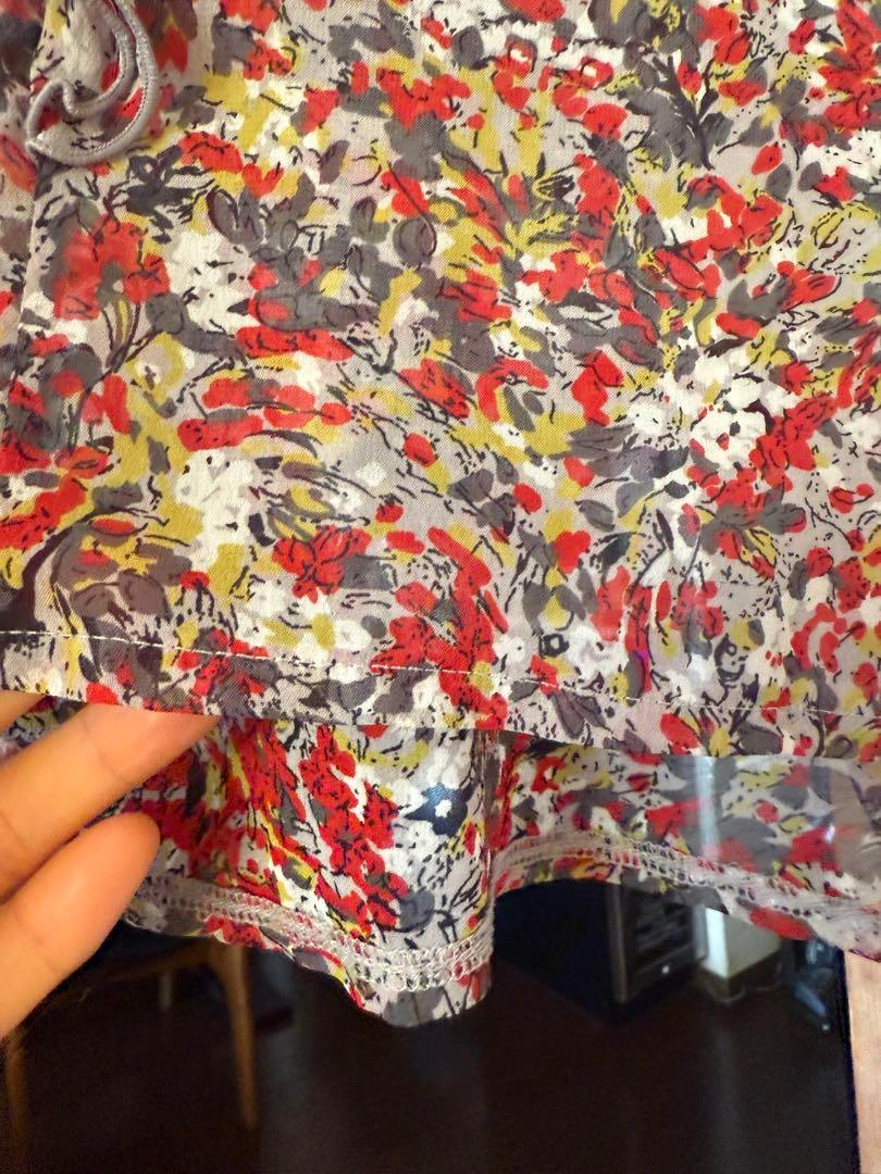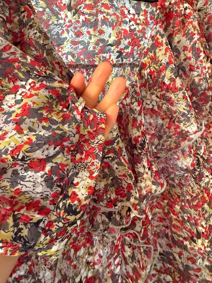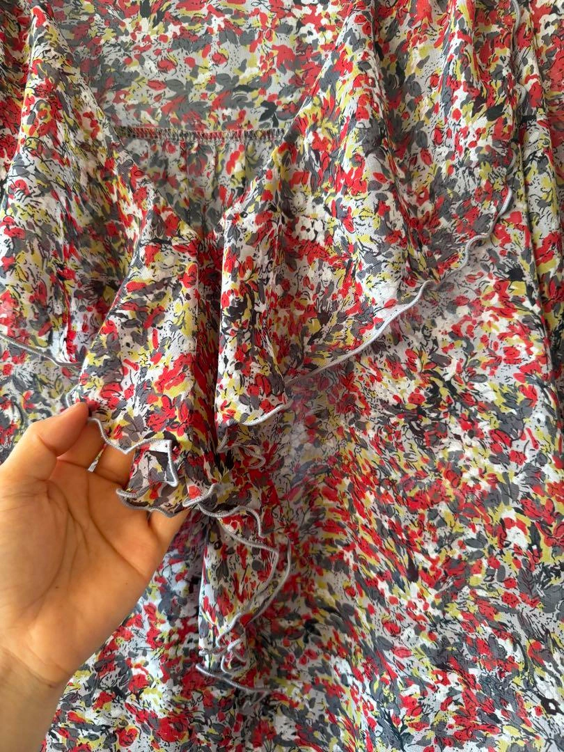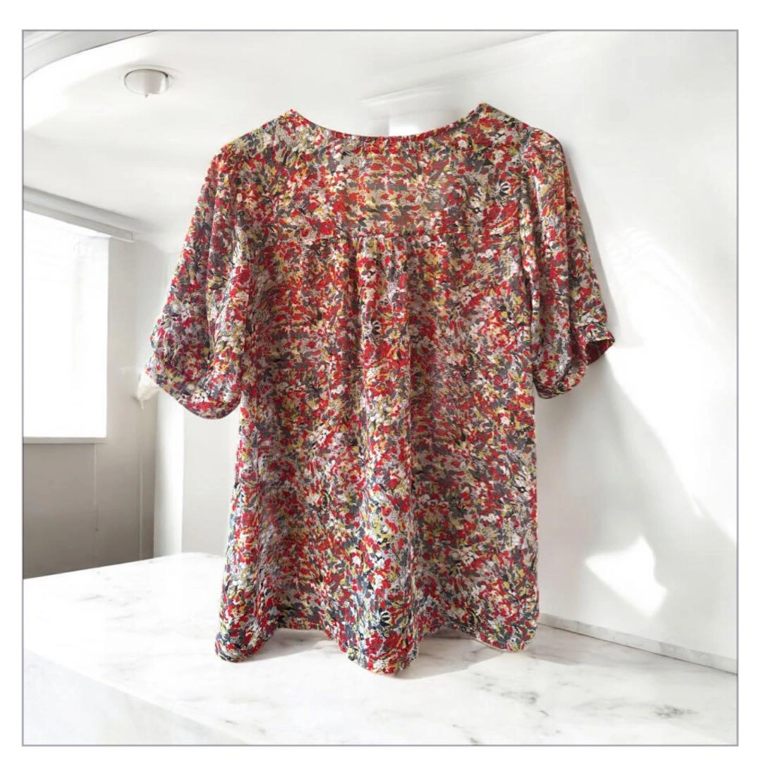 花柄フリル付きグレーTシャツ Lサイズ