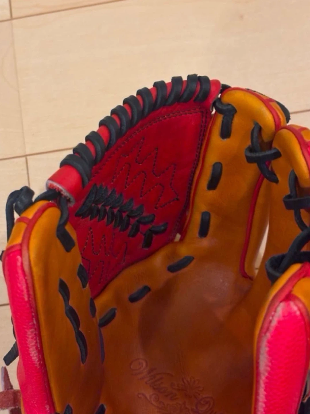 昨年の11月に購入。3回程練習にて使用しましたが、サイズが合わないため出品に至りました。 まだ硬さも残っておりますので、練習を重ねて自分好みに仕上げていただけると思います。 また多少の擦れ等はあります。 ご理解いただける方、ご検討ください^ ^ 他サイトにも出品しているため、突然削除する場合があります。予めご了承ください。 商品情報 定価26,400円 ■右投げグラブになります。 ■全てのグラブにDUALを採用。指先の強いDUALテクノロジーと女子専用機能採用により、女子選手の守備力向上に貢献。 ●女子ソフト ボール用(ゴムボール用) ●Wilson Queen DAUL(ウイルソンクィーン デュアル) ●ピッチャー ●右投げ ●(22EHS)Eオレンジ×EオレンジH×スカーレットSS/(90BHS)ブラック×ブラックH×ブラックSS ●サイズ 8S ●素材 表革素材 プロストックレザーSG+スーパースキン 裏革素材 ライニングレザーSG ●タテとじ、小指かけ無し ●デュアル・テクノロジー、アーチフィッター、バンドフィット調節、親指フィット構造、フラットバインディング ●ベトナム製 ■ウィルソングラブサイズ表示 6S=28.5cm 7S=29.0cm 8S=29.5cm 9〜11S=30.0cm以上 ご覧いただきありがとうございます。