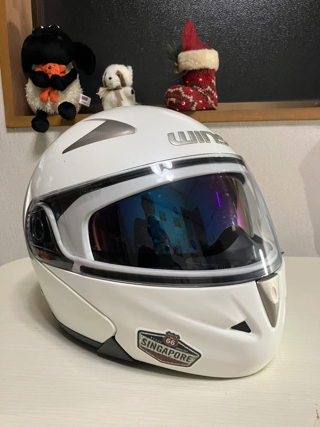 ウインズのシステムヘルメット(インナーシールド付き)です 【情報】 ブランド:ウインズ モ デル:CROWN HELMET CR-I 色:白 【状態】 システムヘルメットで、ダブルレンズ(ミラーシールド付き) の大変使い勝手の良いヘルメットです。 フルフェイスの安全性とジェットヘルメットの開放感に加えて、朝日や西日のまぶしさから目を守ってくれるミラーレンズが内蔵されています。 安全規格はPS CとSGを取得しています。 自宅近辺まで取りに来てくださる方限定でお願いいたします。 事前にご連絡をいただければ、曜日を問わず11時から18時の間お引き渡しができます。
