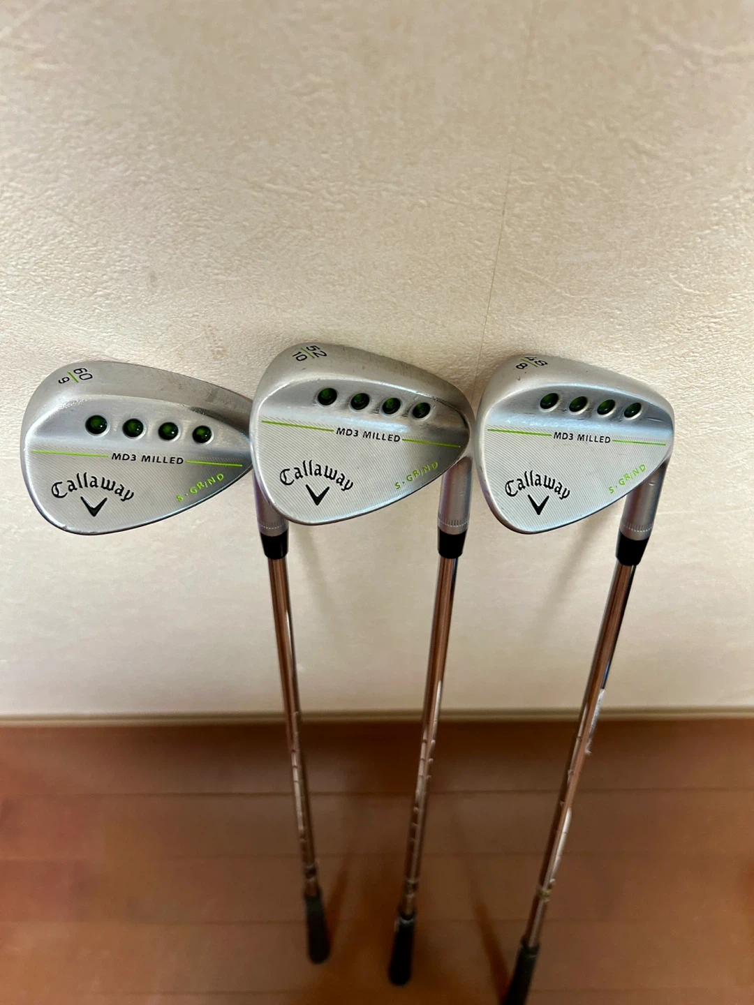 Callaway MD3 Milled S-Grindウェッジ、60度52度、48度のロフト角、ニッケルメッキ仕上げで高いスピン性能を発揮。3本です。 - ブランド: Callaway - モデル: MD3 Milled - 仕上げ: ニッケルメッキ -ロフト、シャフト 60° NSプロ950GH 52° NSプロ950GH 48°ダイナミックゴールドS400 -グリップは使用可能 -数年使用しました。 ※1 本:5500円でも可能※ 【受け渡し場所】 地下鉄東西線落合駅orJR総武本線東中野駅 ご覧いただきありがとうございます。