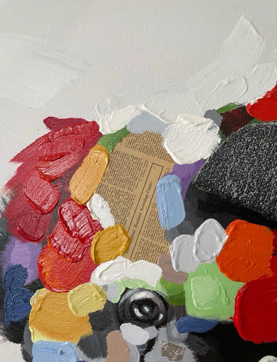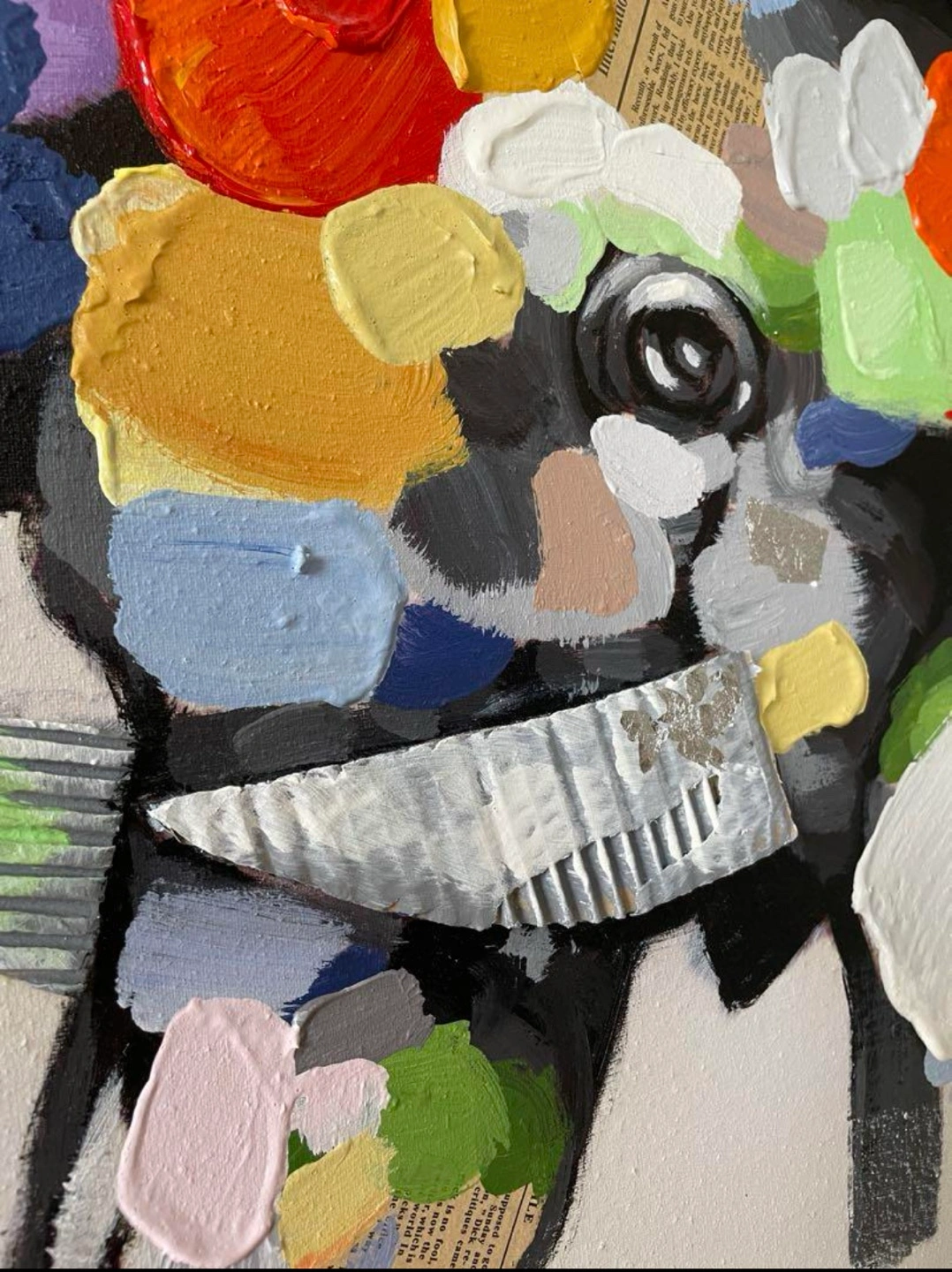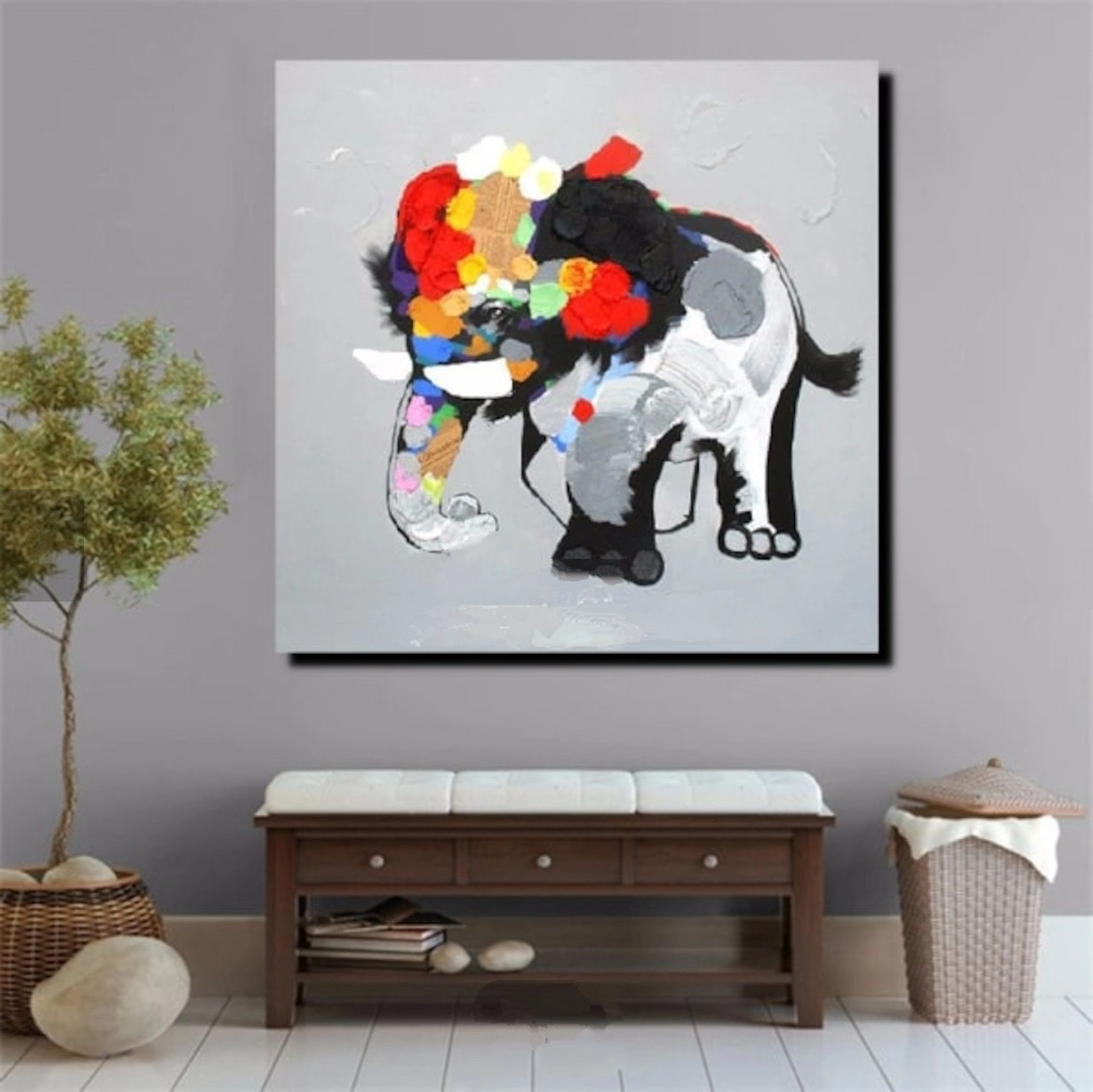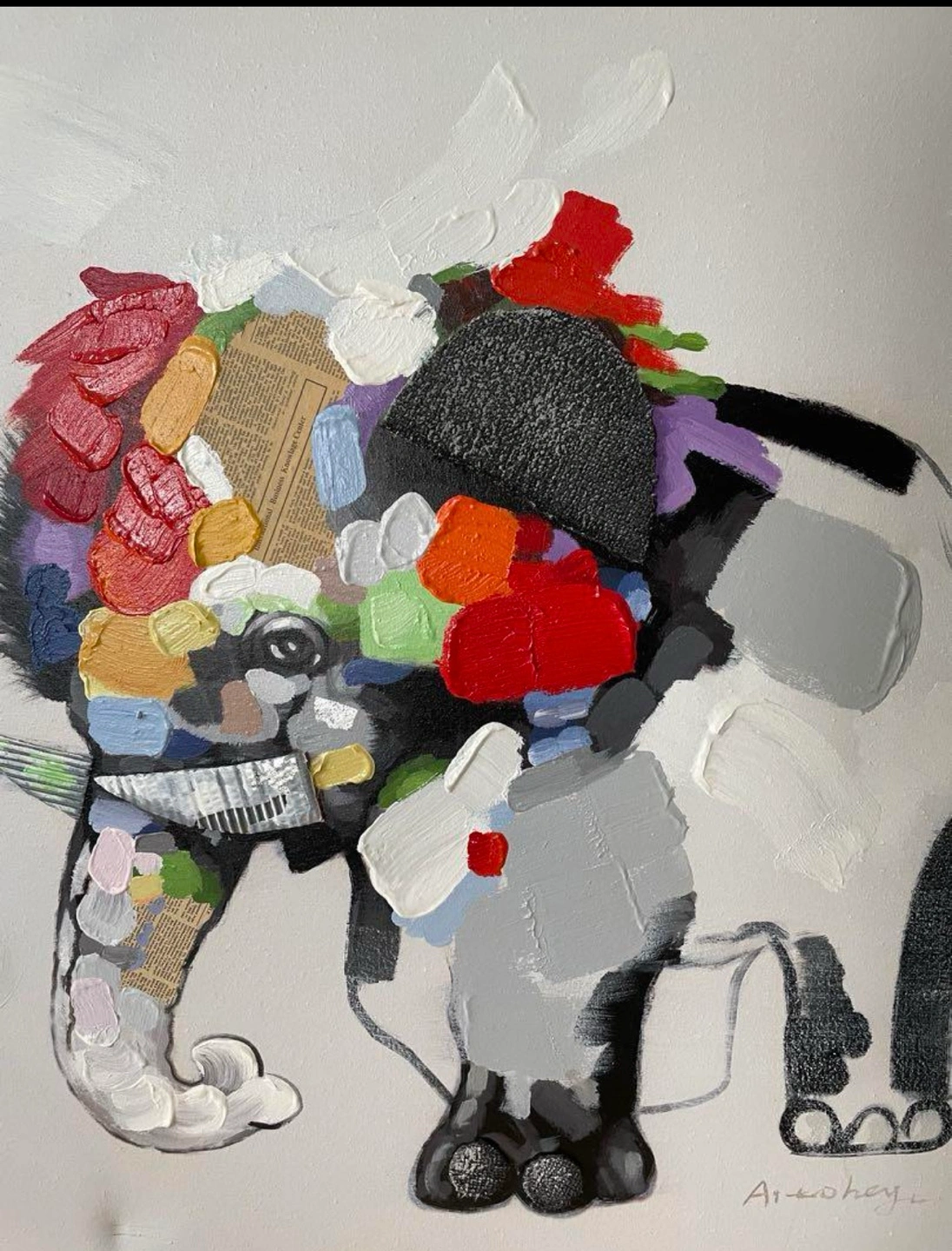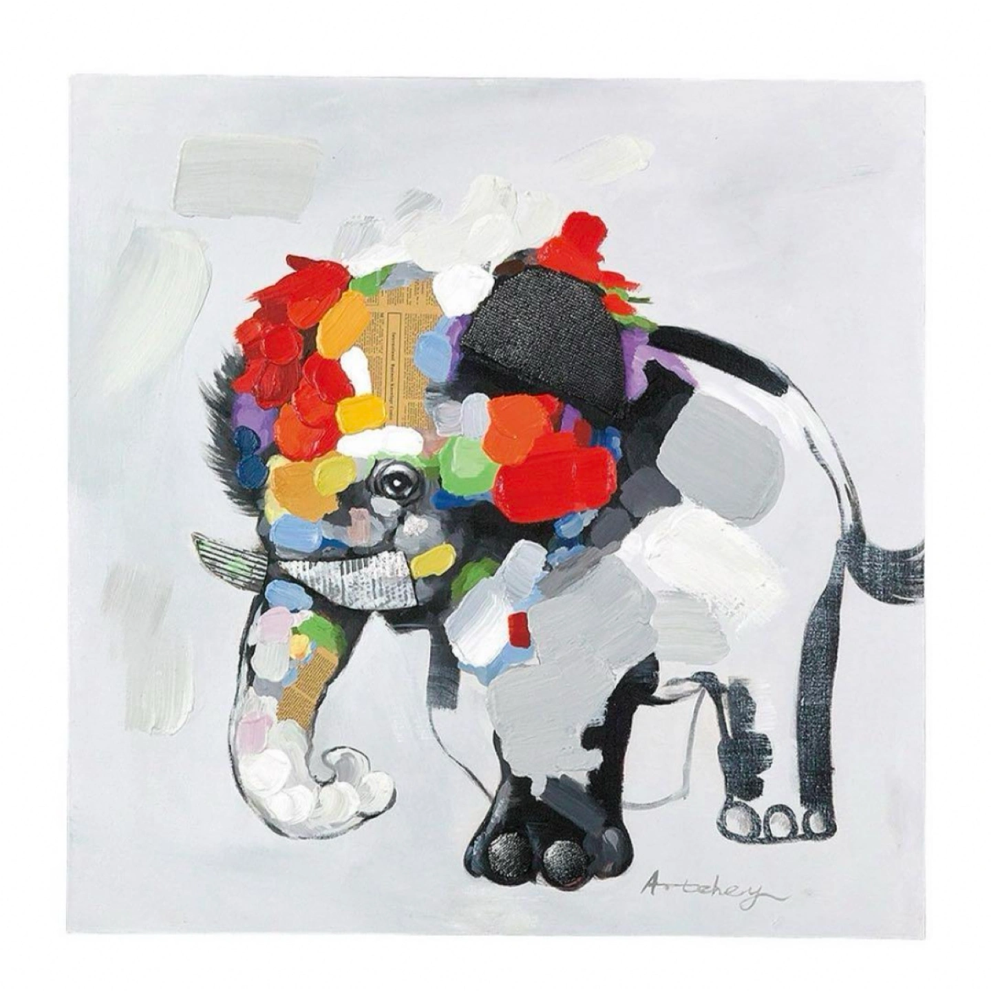 油絵 エレファント カラフル アートパネル 動物シリーズ アニマルポップアート 凹凸あり 特大アートパネルでかわいくて華やかです。 絵の具をこてっと塗り象を描いた、油絵風のウォールアート。 鮮やかな色彩を用い、一部に活字が綴られたペーパーをあしらって巧みに味つけしています。 玄関やリビングはもちろん、カフェやレストランの演出にもぴったりです。 サイズ:100cm x 100cm厚み3.5cm 壁掛用金具付 4万前後で受注生産の商品です