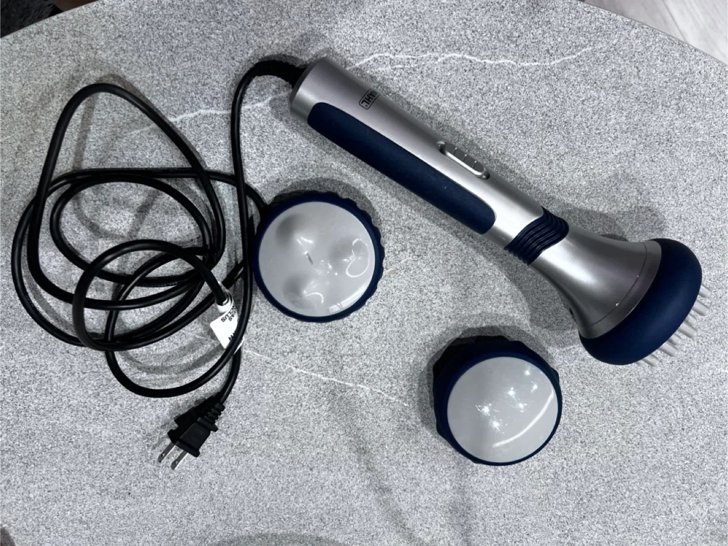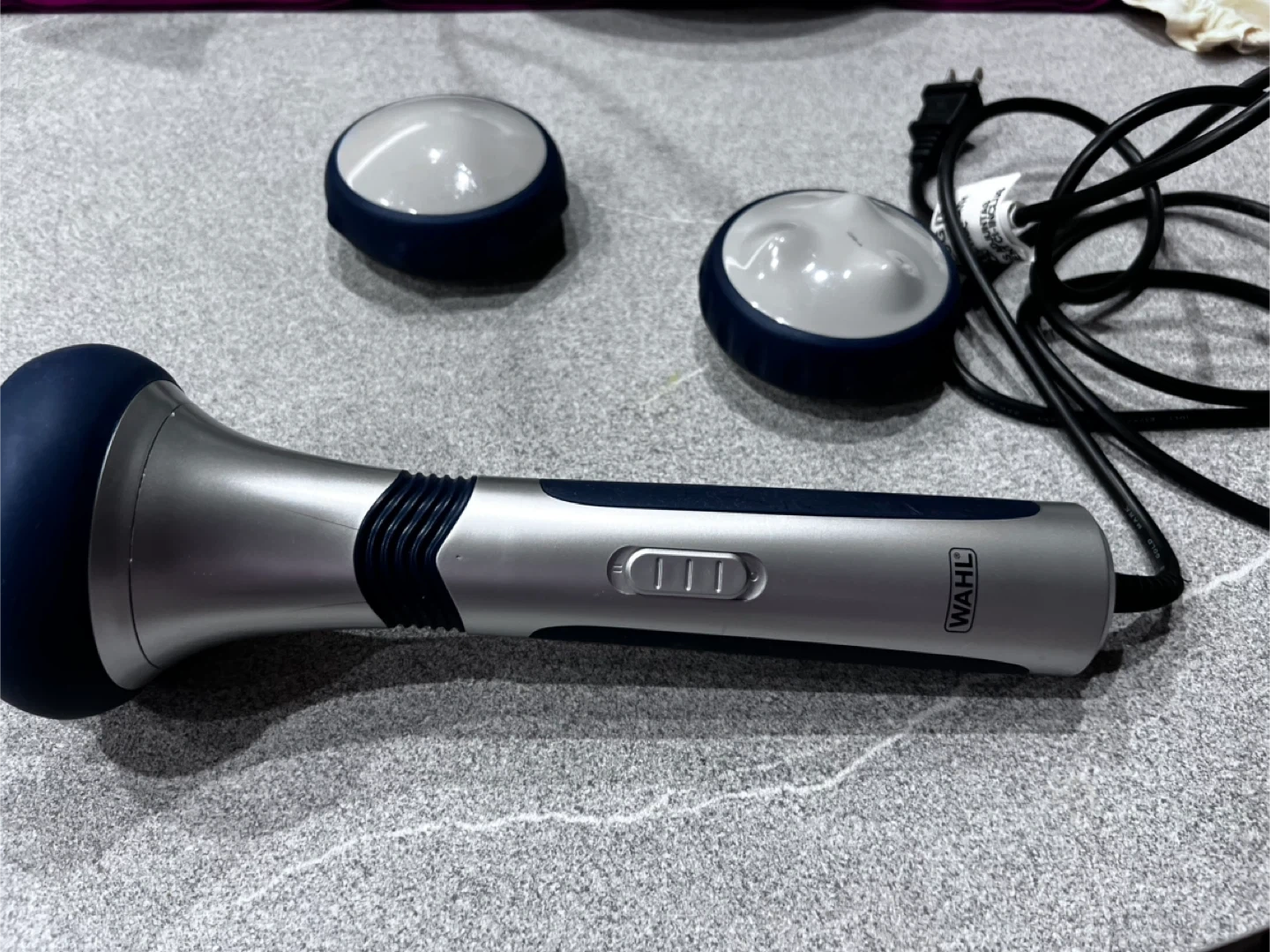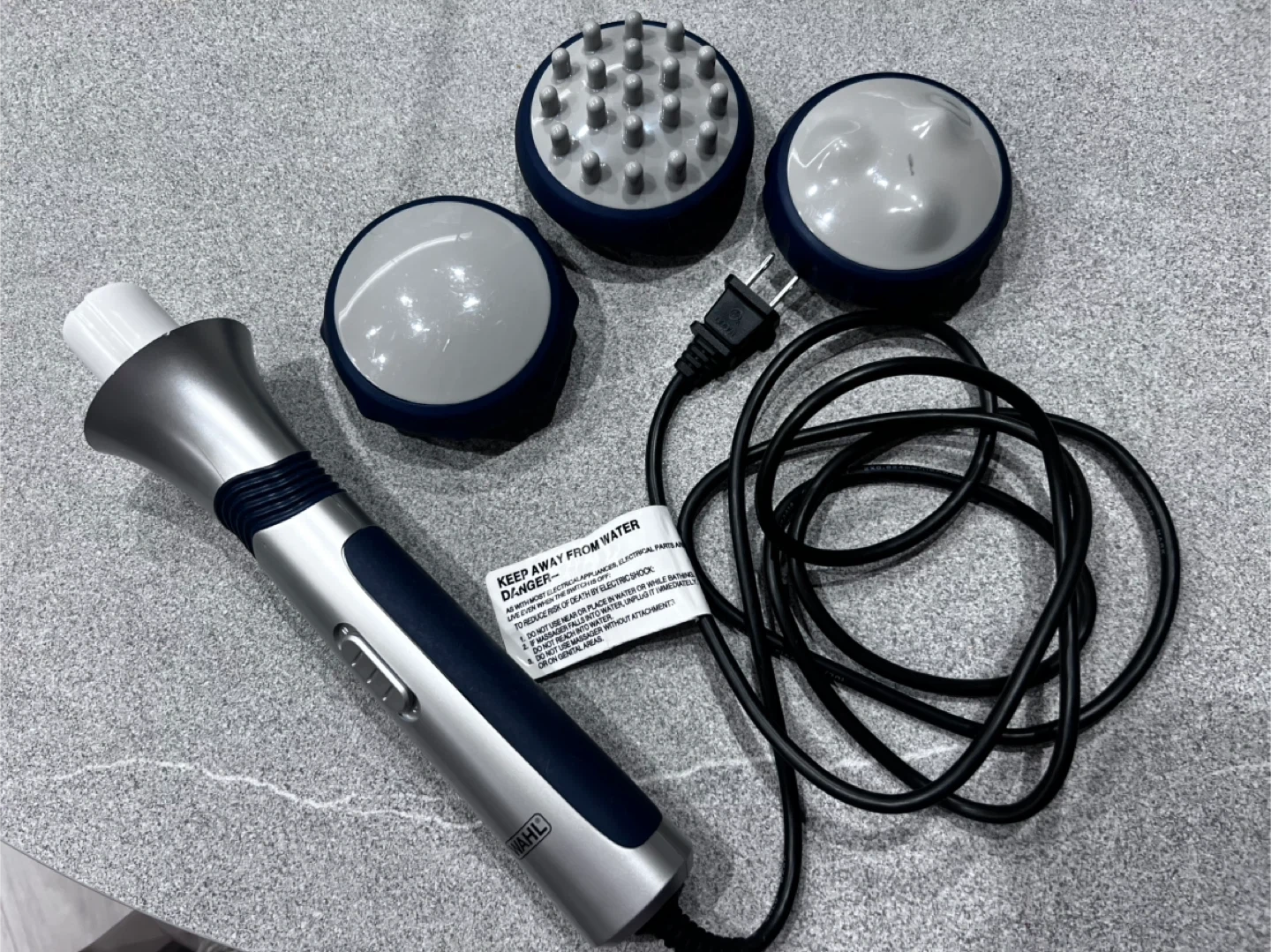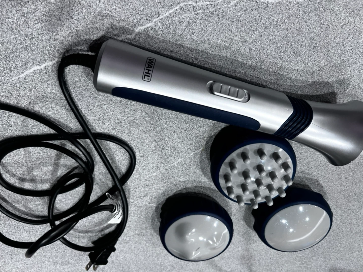 ウォールのマッサージ機です ・ブランド:ウォール ・色:シルバー、紺色 ・付属品:アタッチメント3種 ・状態:使用感少なめ(10回程ぐらい 中古品であることご了承ください 受け渡しは平日の16:00以降が希望になります。