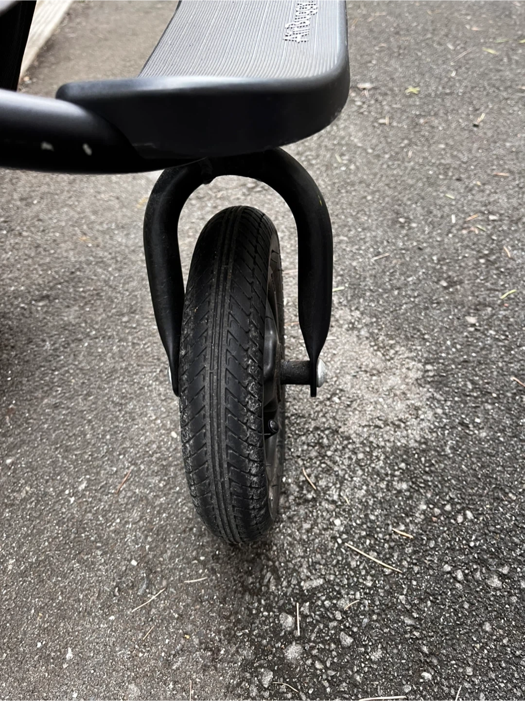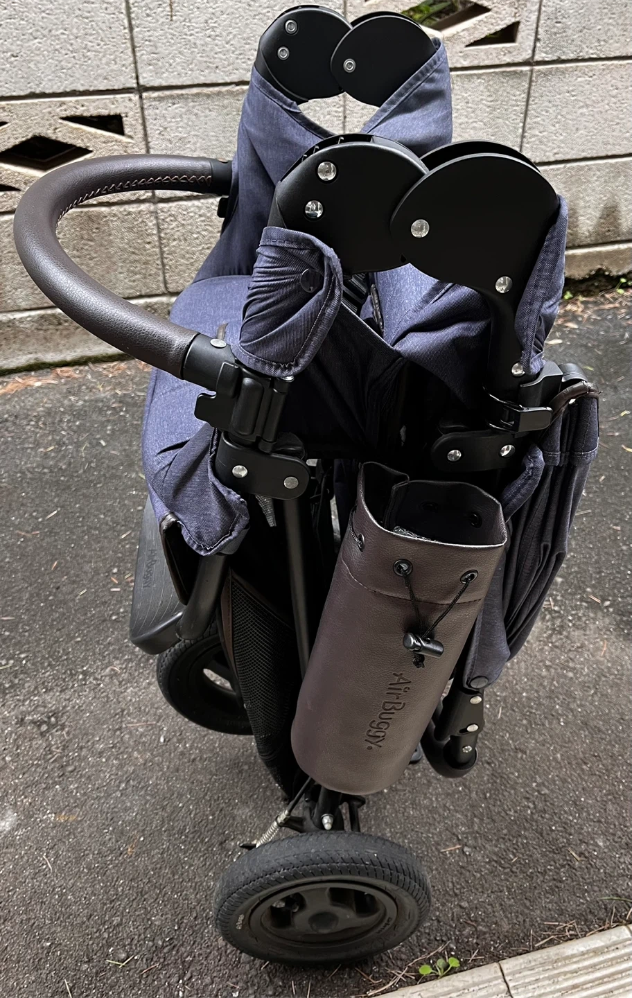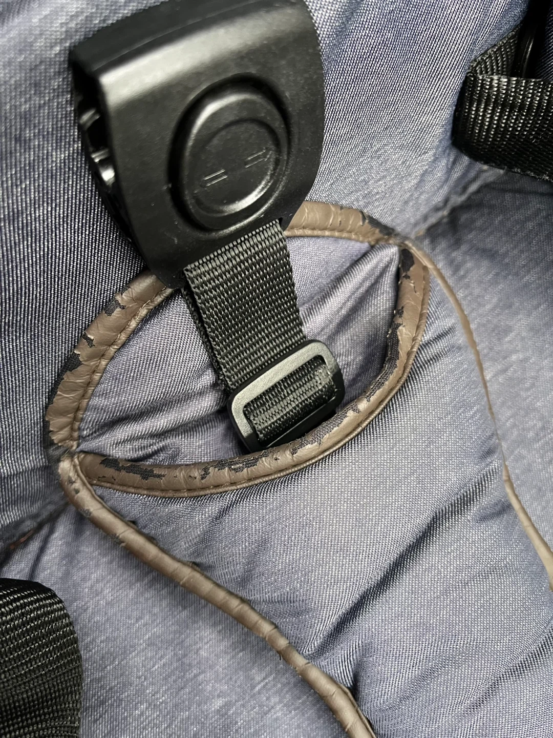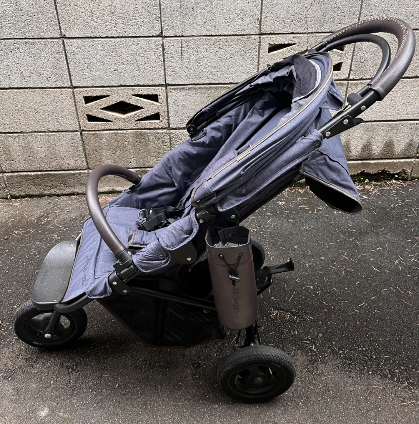 エアバギーのベビーカーCOCOブレーキです。 色はデニム地のブルー系です。色褪せはあまり感じません。 ハンドル、ドリンクホルダー、フロントバーはブラウンの合皮です。 付属品:ドリンクホルダー、レインカバー、空気入れ 2017年に購入し、2人の子に使用し、完全に使わなくなったのは2025年の春頃です。 2021年12月に1度クリーニングをしてもらっています。レインカバーはクリーニング後1度も使用していません。 2019年頃に前輪のみタイヤ交換をしています。後輪2つは交換していませんので、擦り減りが前輪より強めです。 写真7枚目:ハンドルの縫い目がほつれています(フックのマジックテープがひっついてしまったため)。使用には問題ありません。 写真8枚目:合皮部分が所々破れてしまっています。全ての部分を写真添付できなかったので、1番破れが多い部分を載せています。 現在発売されているエアバギーの仕様とは異なり、リクライニング方法が全く違います。 説明書が紛失していますので、ネットで検索お願いいたします。 【情報】 ブランド:エアバギー 【状態】 使用感、傷あり あくまでも中古品であることご了承ください。 エアバギー製品やベビーカーグッズも出品しています。 おまとめ買いの場合は気持ちお値引きさせていただきますのでご検討ください。