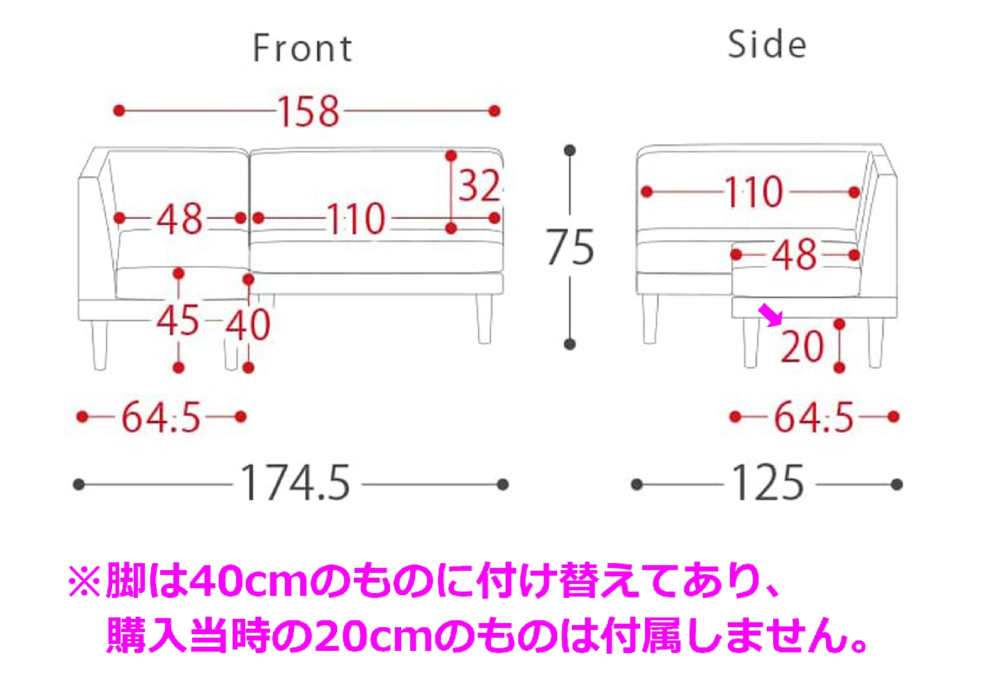 2年前に新品購入したものですが引っ越しのため出品いたします。 画像3枚目にありますとおり、脚を40cmのものに付け替えており購入当時の20cmのものは処分済みになりますので付属しません。またソファカバーを固定していたテープ跡が表面に残っていたり剥がす際に破れてしまった箇所がいくつかあります。 セットで使用できるテーブルも同時出品していますのでご希望の方は是非ご覧ください。 ★10/12(日)〜29(水)に直接引き取りに来ていただける方★ 【メーカー製品ページ】 https://www.air-r.jp/products/detail.php?product_id=8893