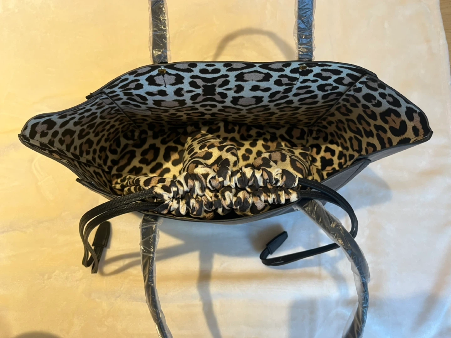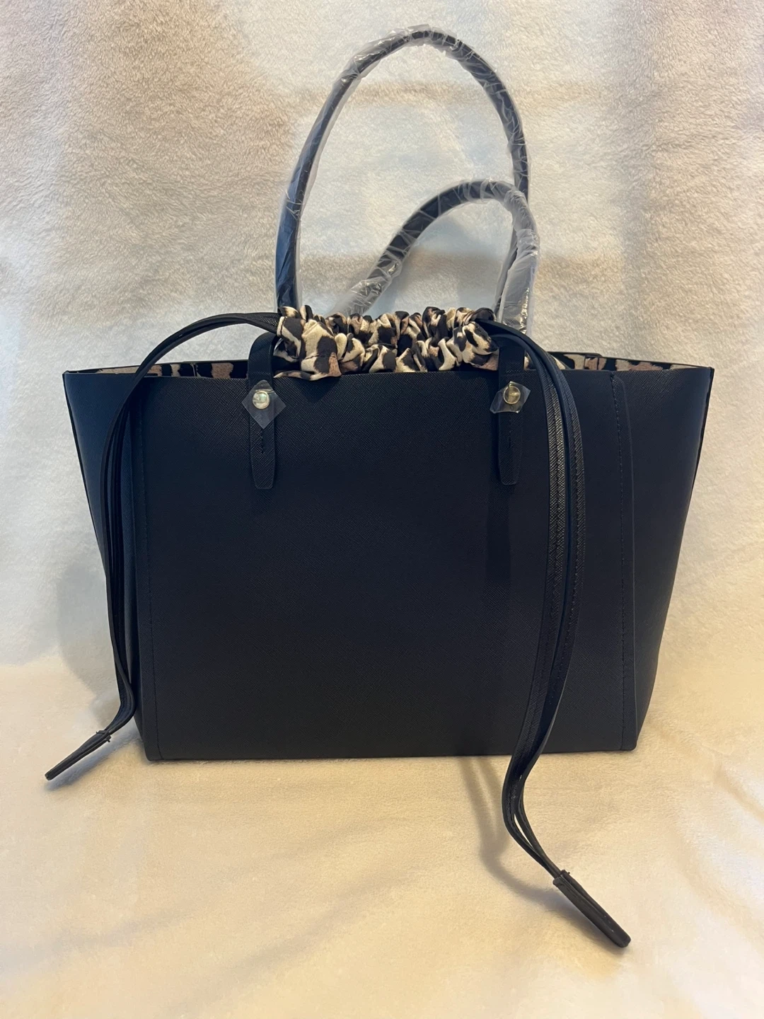 エスティローダーのトートバッグです。 ・カラー:ブラック ・内側:ヒョウ柄 ・付属品:巾着袋(ヒョウ柄) ・未使用品 サイズ→ 縦24.5cm × 幅30.5cm × マチ12.5cm 状態は写真の通りですが質問がありましたらご連絡ください。