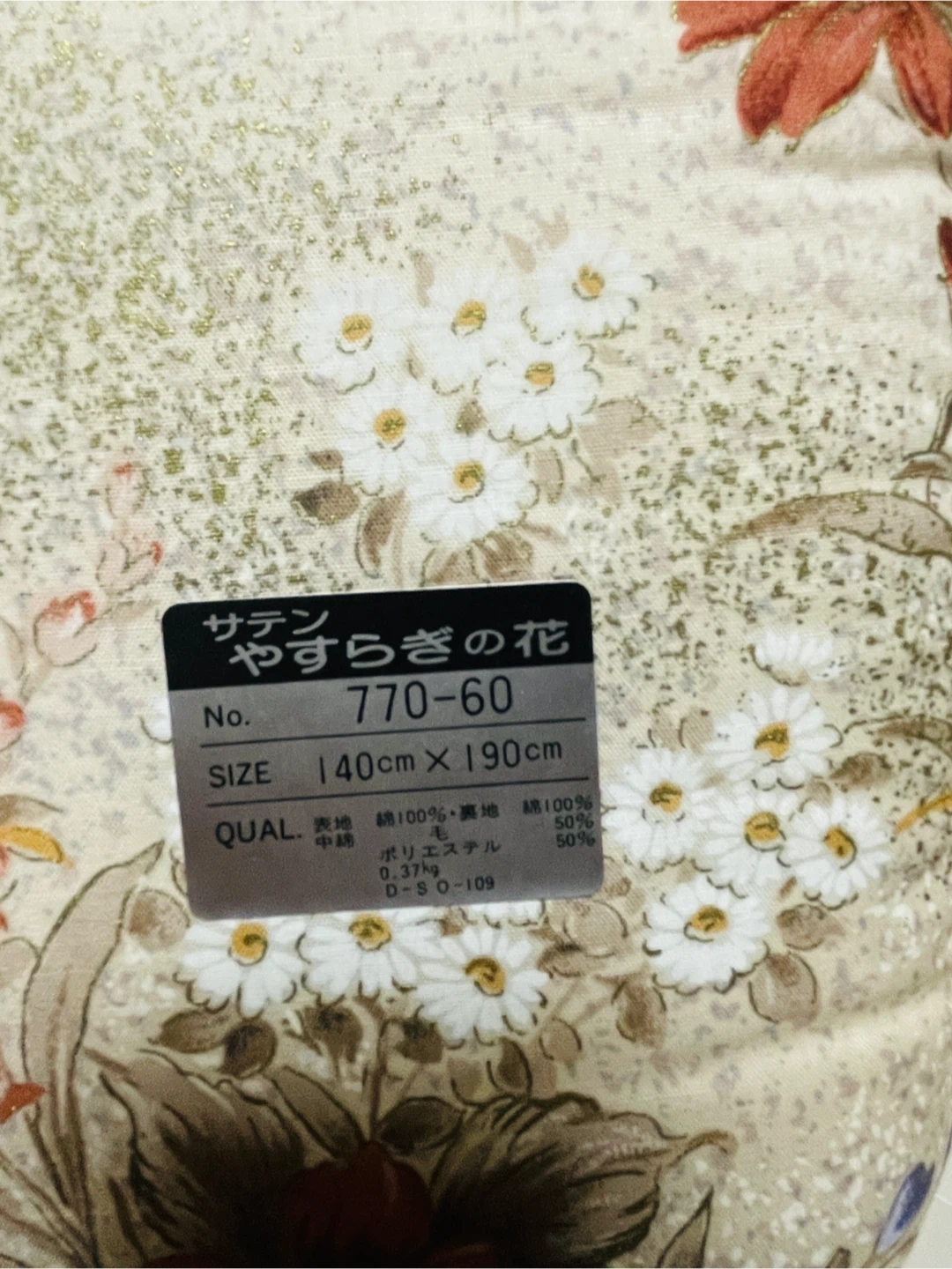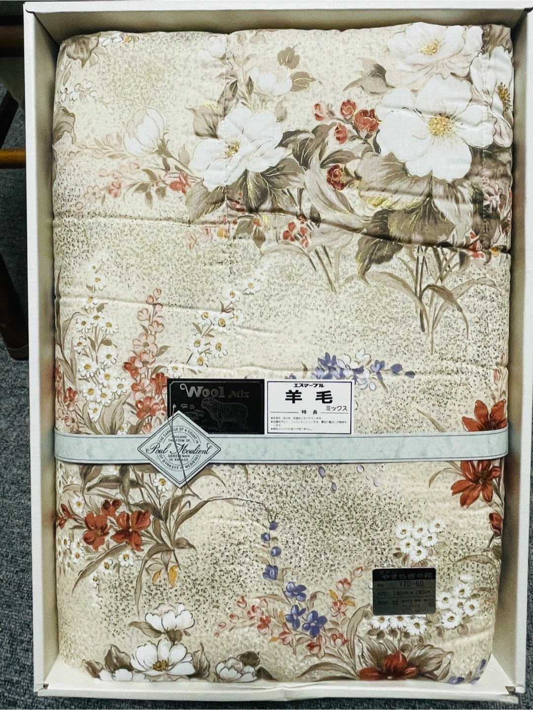 エスマーブル 羊毛肌掛け布団 【情報】 ブランド:エスマーブル 素材:ウールミックス サイズ:140cm x 190cm 表地/裏地 綿100% 中綿 毛50%/ポリエステル50% 経年未使用品ですが、密封されておらず、箱に直収納です。 北区中十条まで来て頂ける方のみと取引させていただきます。値引き交渉および梱包は致しません。 専用箱のままお渡しますが、不要の場合、こちらで処分します。 埼京線十条駅および京浜東北線東十条駅が最寄り駅となりますが、駅でのお引き渡しは行いません。 指定場所でのお取り引きとなります。 以上、よろしくお願い致します。