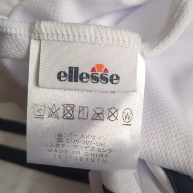 ・ブランド:エレッセ ・サイズ:S ・カラー:白、紺色のライン ・型番:ETS2700L ・ポリエステル100% ・ロゴあり