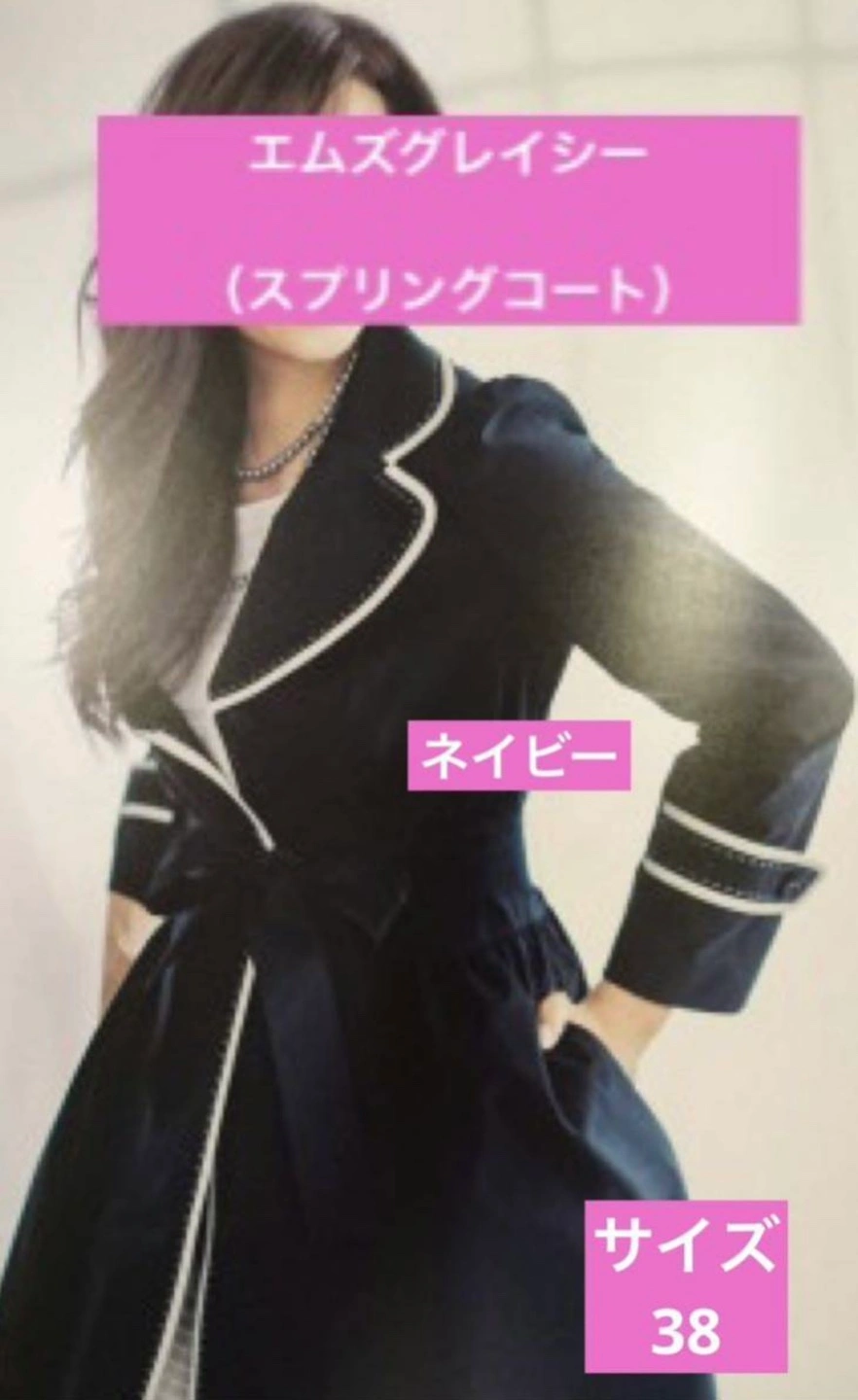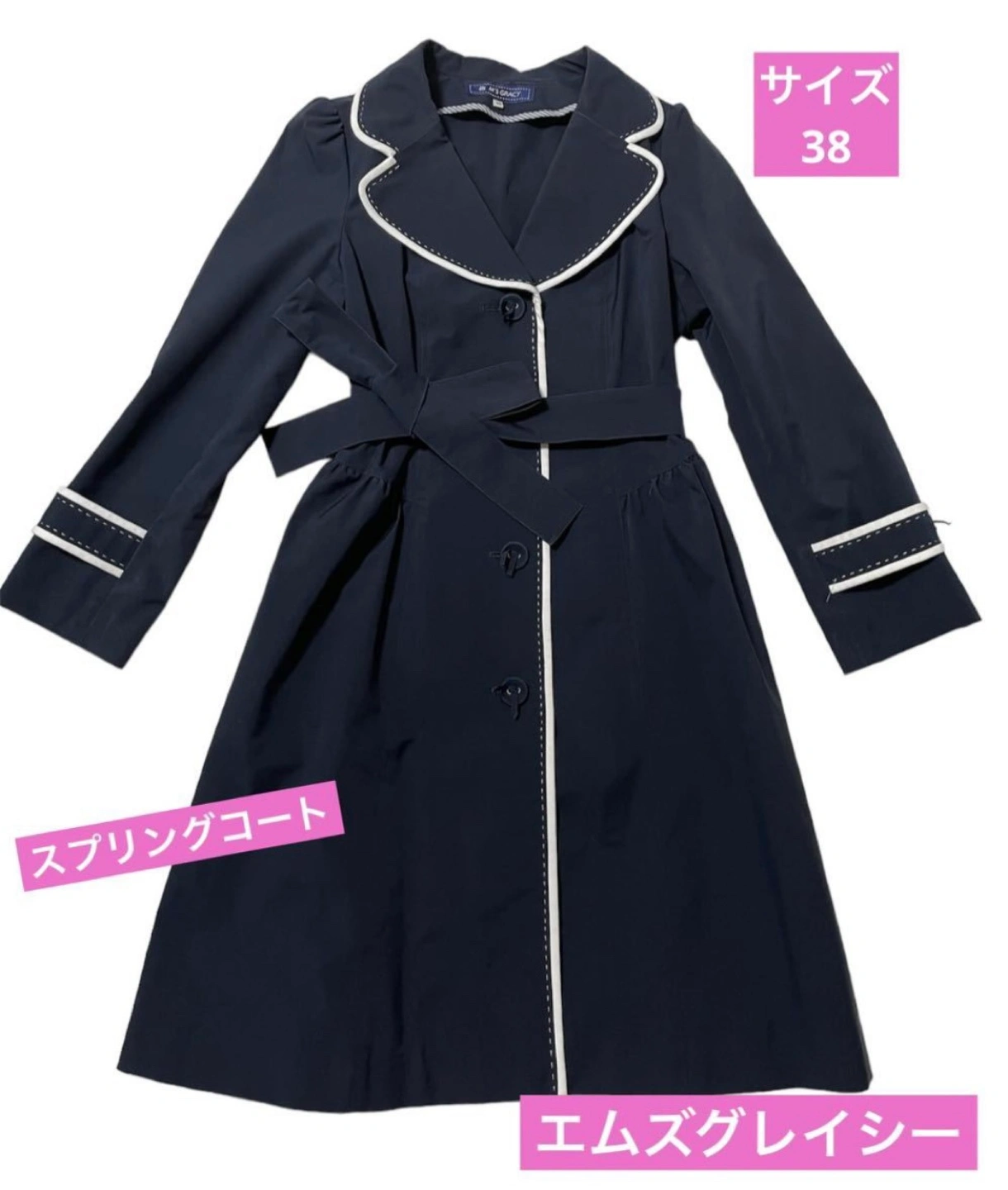 中古品 エムズグレイシー スプリングコート ハリのある感じのコートです。 サイズ 38 カラー ネイビー バイカラー 全体的に綺麗ですが、気に入って着用してました。 気になる方はクリーニングにお出ししてから着用してください。 中古品にご理解ある方からお問い合わせをお待ちしております。 見落としがありましたらすみません。 半額以下