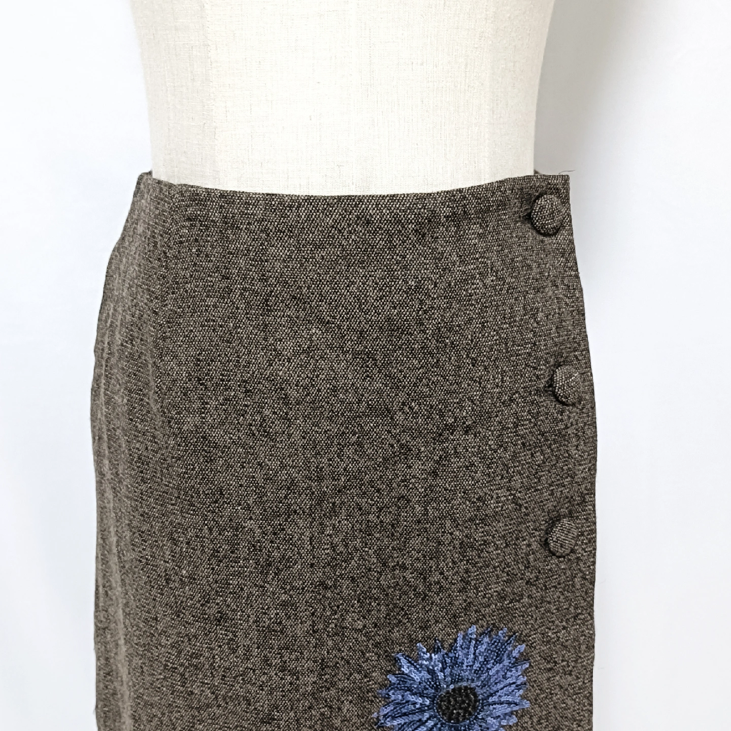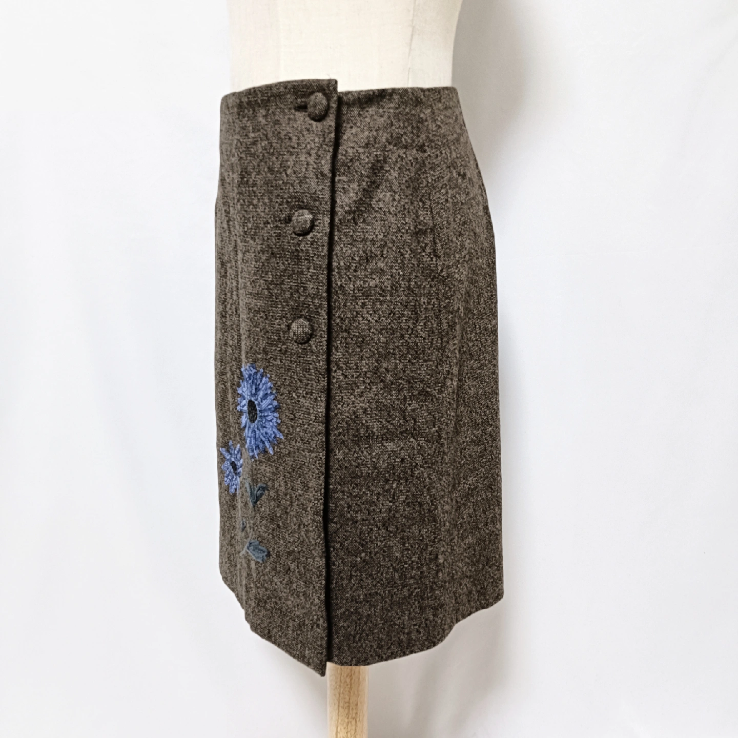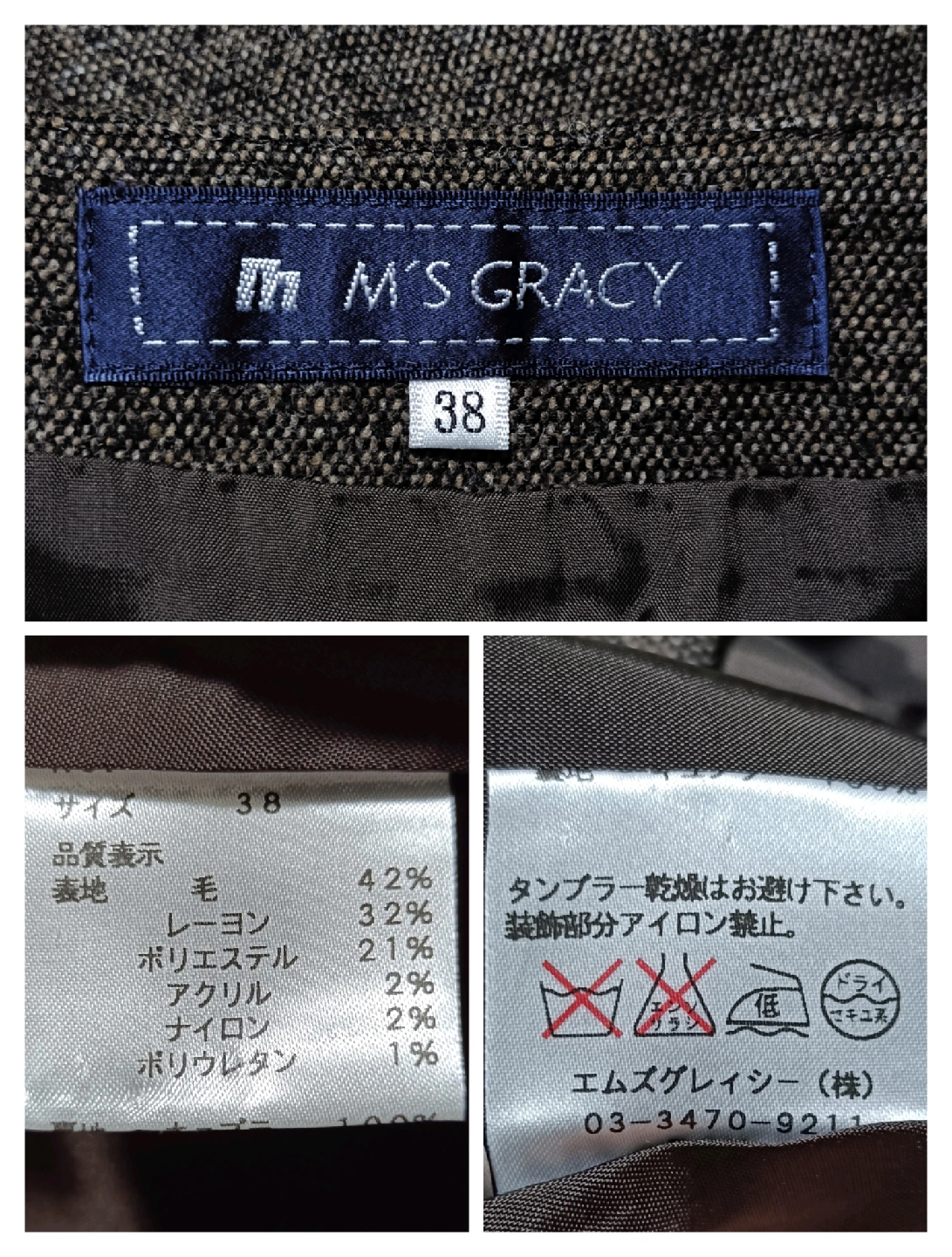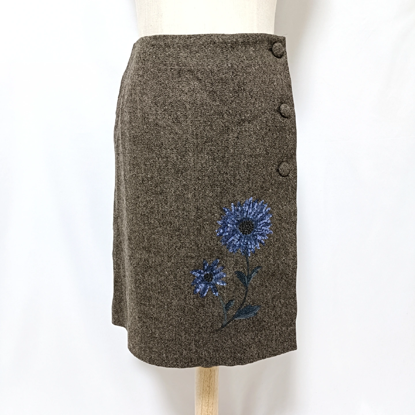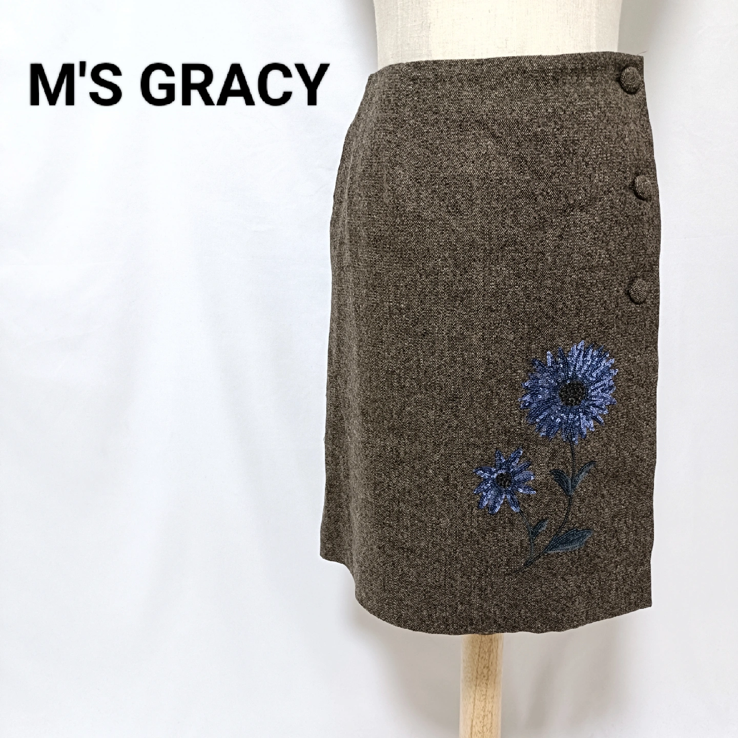 ご覧いただきありがとうございます! M'S GRACY (エムズグレイシー) の、エレガントで華やかなラップスカートです。 暖かみのあるブラウンのウール混生地に、目を引くブルーのスパンコールとビーズのフラワー刺繍が施された、M'S GRACYらしい大変素敵なデザイン。 華やかな刺繍が、落ち着いたブラウンの生地に映え、秋冬のコーディネートを明るく彩ります。 #joymaxお得なプロフへ #ゆうの古着屋さん_スカート □商品名□ エムズグレイシー 華やかスパンコール花柄刺繍 ラップスカート 38 茶 □ブランド□ M'S GRACY エムズグレイシー □表記サイズ□ 38 □実寸サイズ(cm) □ 【平置きサイズ】 ウエスト:34 着丈:51 ※実寸につきまして多少の誤差はご了承ください。 ※表記サイズだけではなく実寸のサイズをご確認ください。 □カラー□ ブラウン系 □素材□ 表地:毛42% レ ーヨン 32% ポリエ ステル2% アクリル 2% ナイロン1% ポリウレタン1% 裏地:キュプラ100% □コンディション□ 目立った汚れやダメージなど特にございません。 ※汚れはできる限り写真にて掲載しております。まずは画像をご確認ください。 出品一覧→ #joymaxお得なプロフへ どうぞよろしくお願い致します。 □商品管理番号□ GG5-W-5437