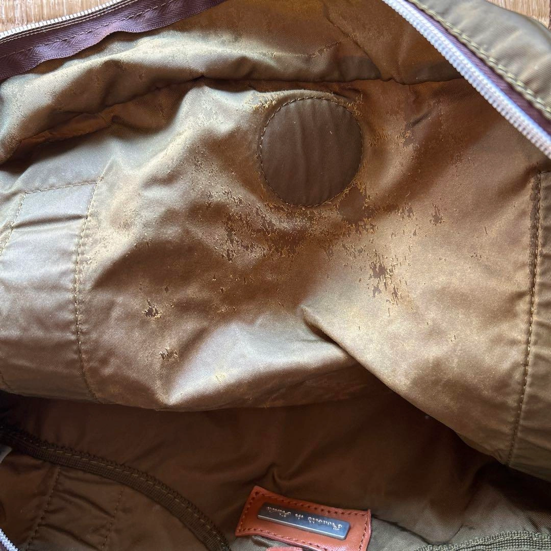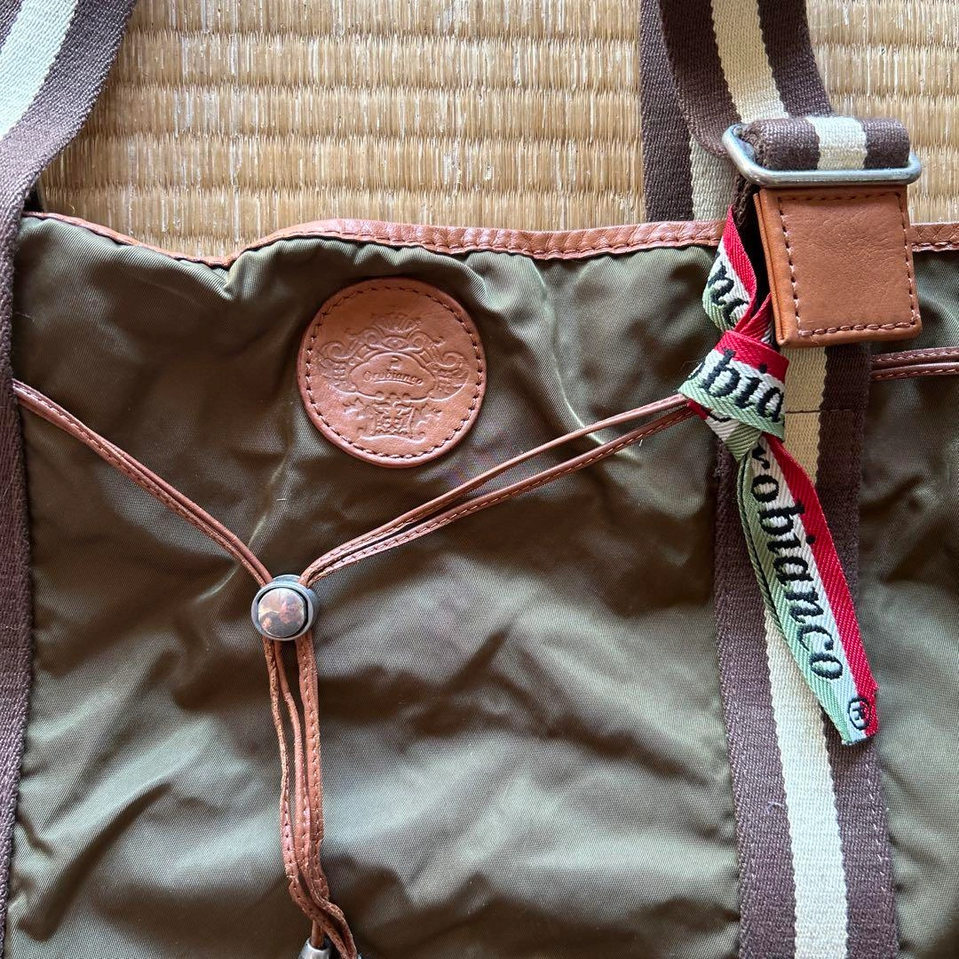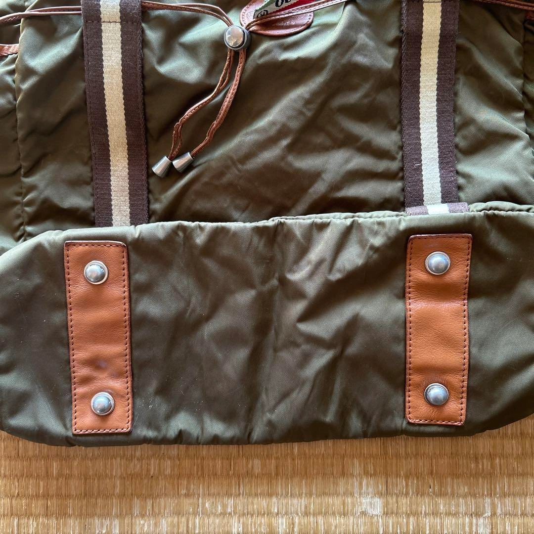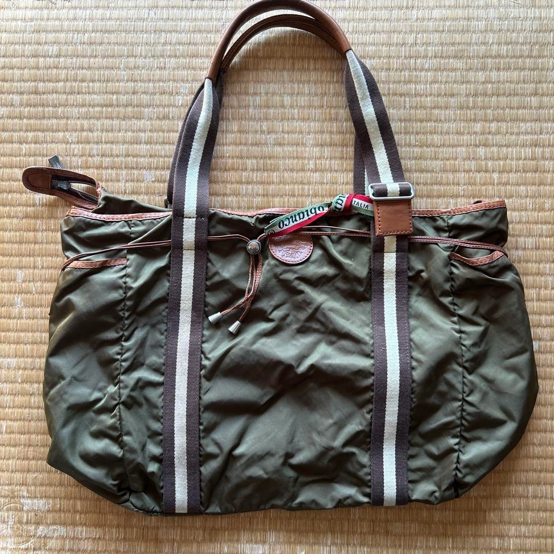 オリーブ色のナイロン製トートバッグです。ストライプデザインで、内部に汚れがあります。 使用感はありますが、まだまだ使っていただけます。 - ブランド: オロビアンコ - 色: オリーブ - 素材: ナイロン - デザイン: ストライプデザイン - 内部状態: 汚れあり - サイズ:(約 高さ×横×マチ/cm)38×35.5×16 重さ:740g ご覧いただきありがとうございます。 ご希望の方はお気軽にご連絡ください。