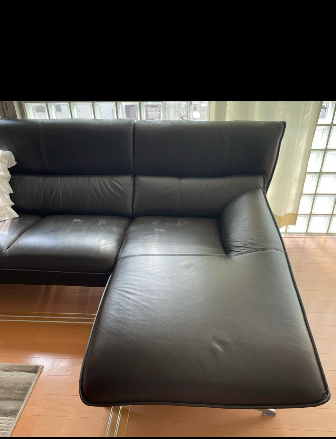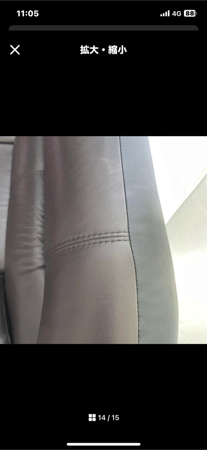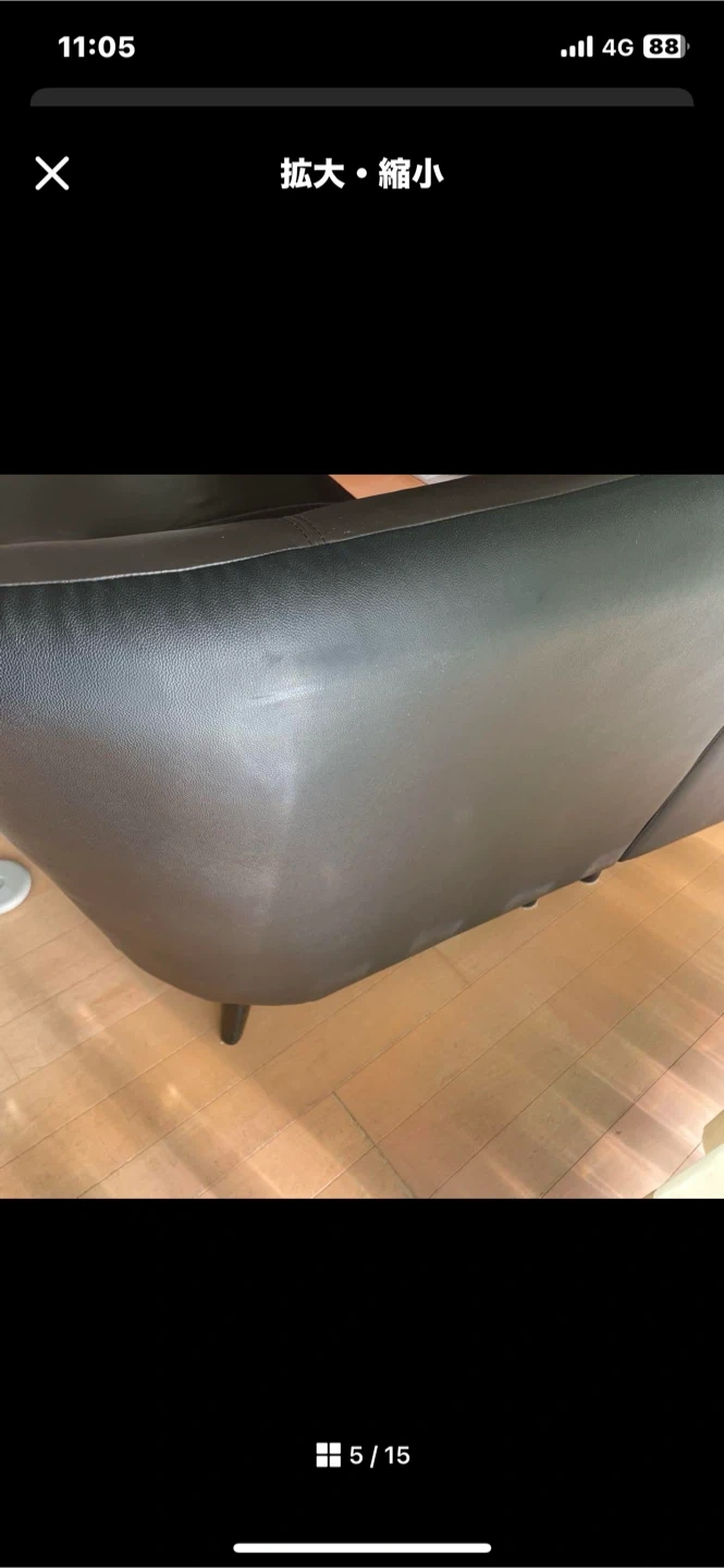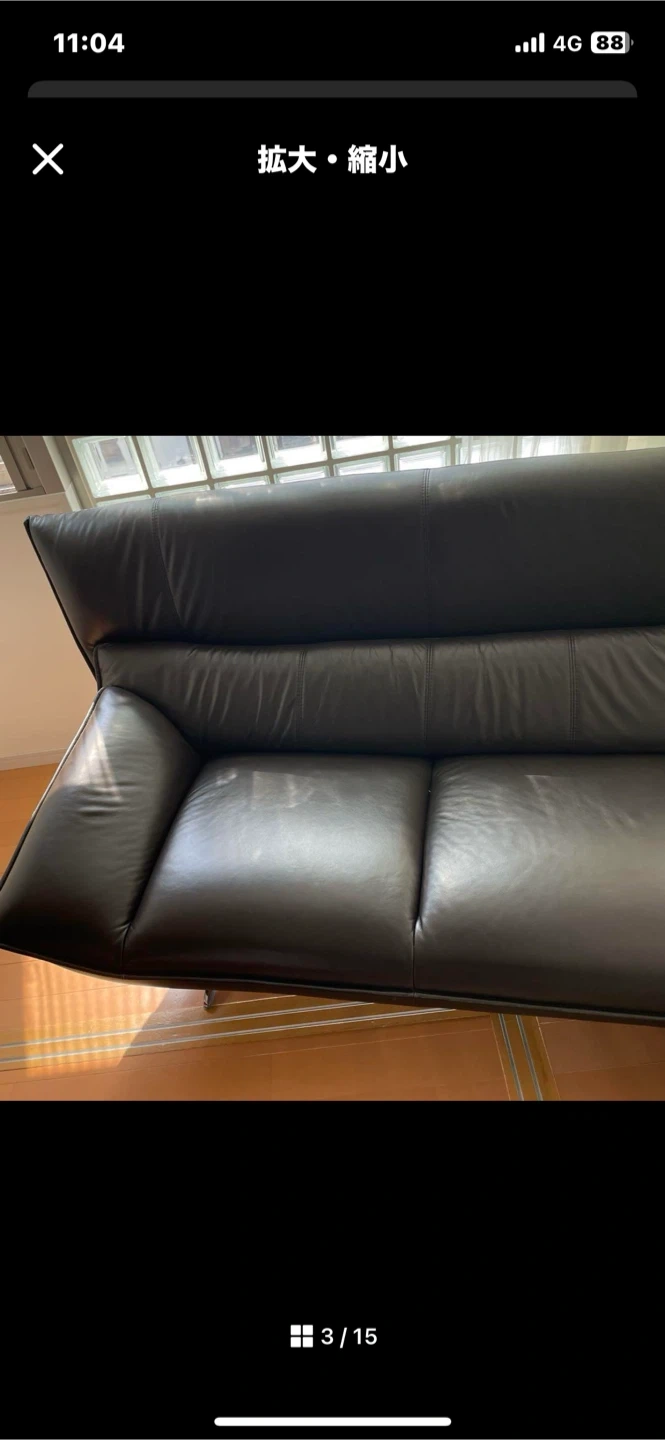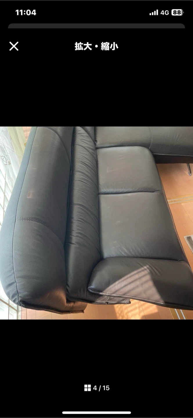合皮レザーソファです 二つに分けれるので運びやすいです。 ・カラー:ブラウンとブラック ・サイズ:横220センチ高さ90センチ カウチの部分160センチ カウチ以外は奥行き70センチ (画像参照) ・使用頻度たまに 使用期間短いです。 凹みもなく綺麗です。 光が映っていますが 汚れではないです。 定価15万円程でした。 中古品であることご了承ください