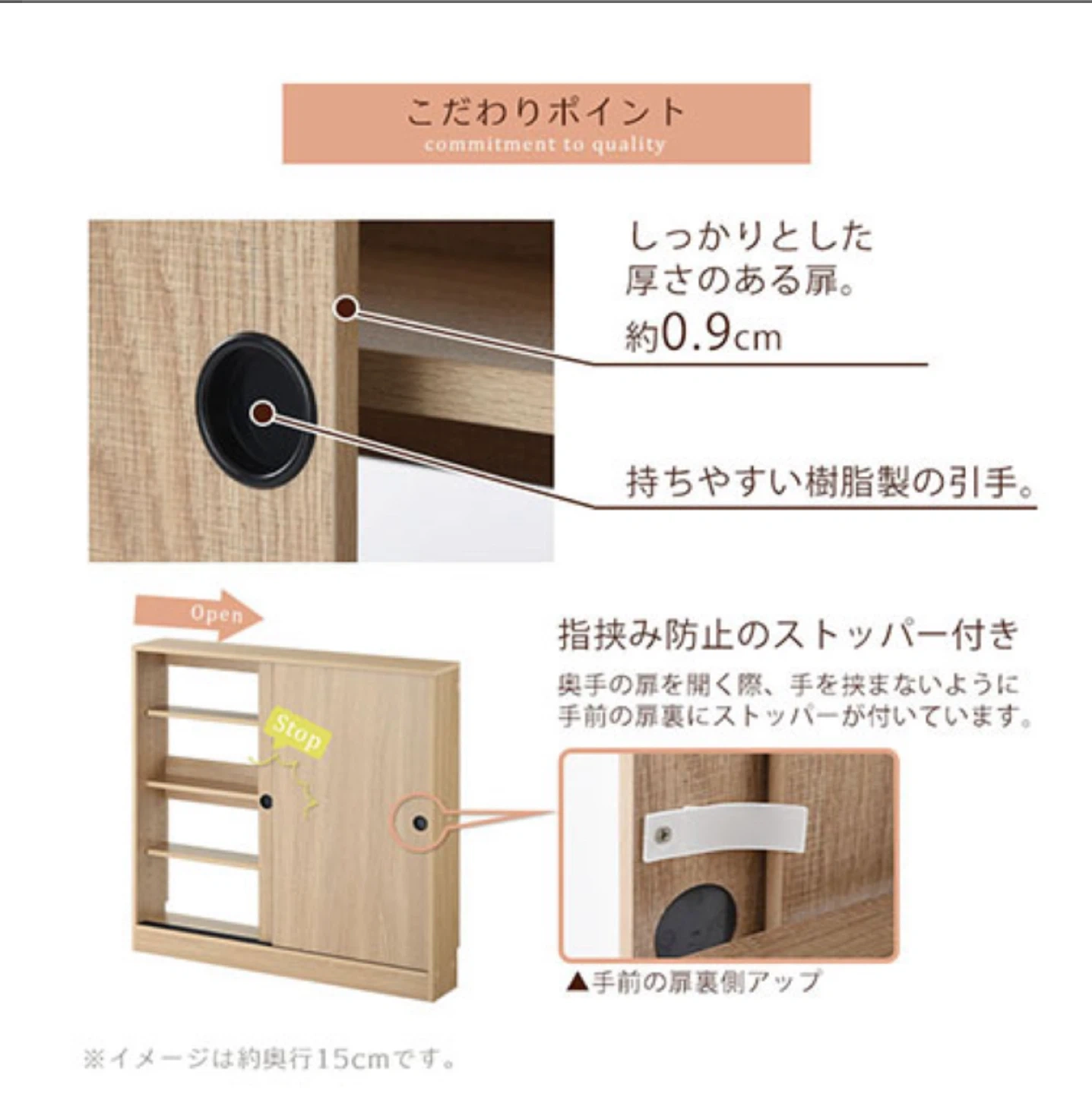 カウンター下などに使えるスリム型のスライド式の収納棚です 写真の2枚目が現物になります。 色 オーク 3年ほど使用しましたが、目立つ傷や汚れはなく問題なく使えています。引越しに伴い出品します。 お引き渡し希望時期 10/20〜24 それ以外に希望日があればご相談ください。 【情報】 奥行き:約20cm 横幅:約90cm 高さ:約85cm 【状態】 目立つキズなし 中古品であることご了承ください