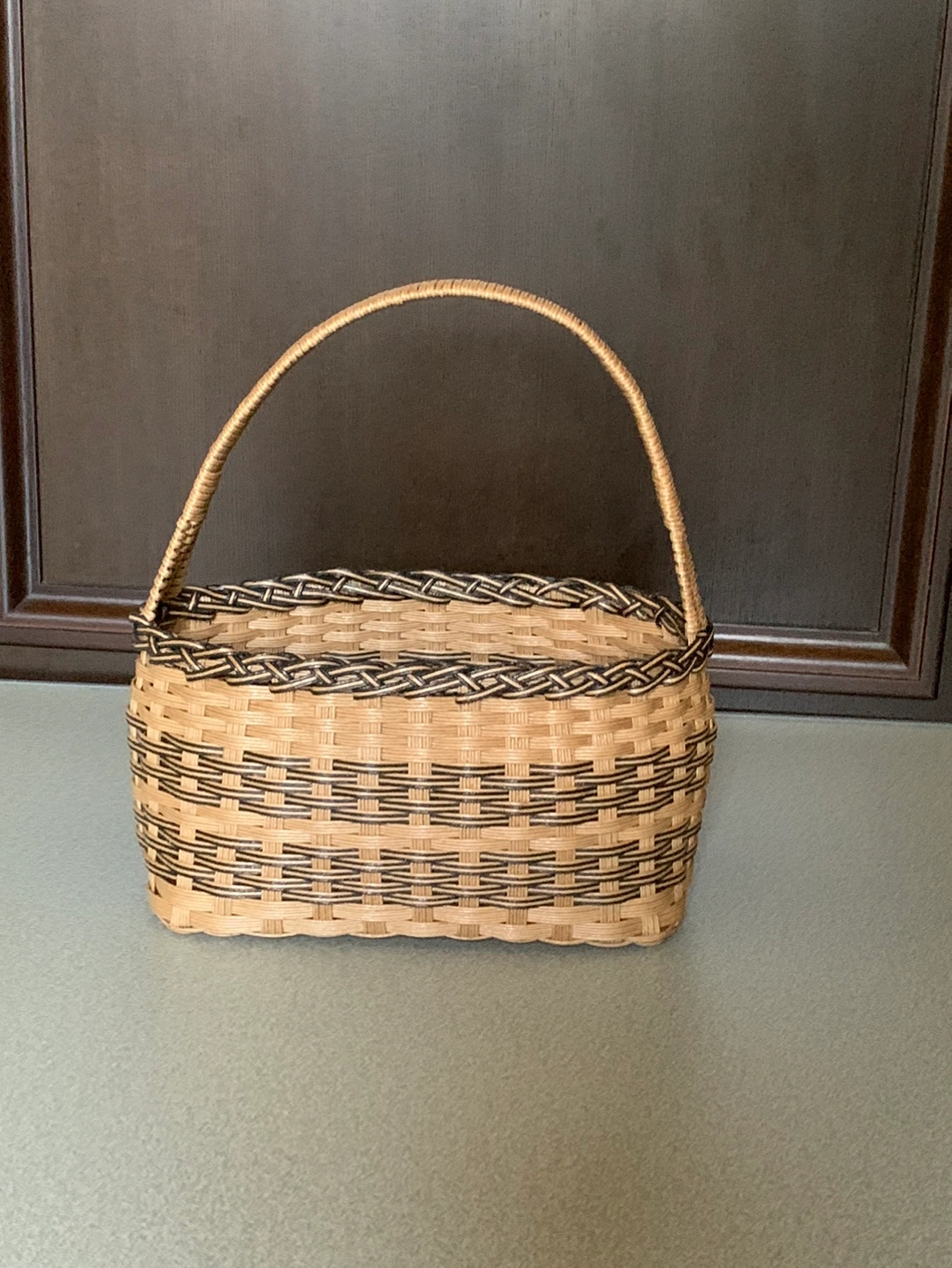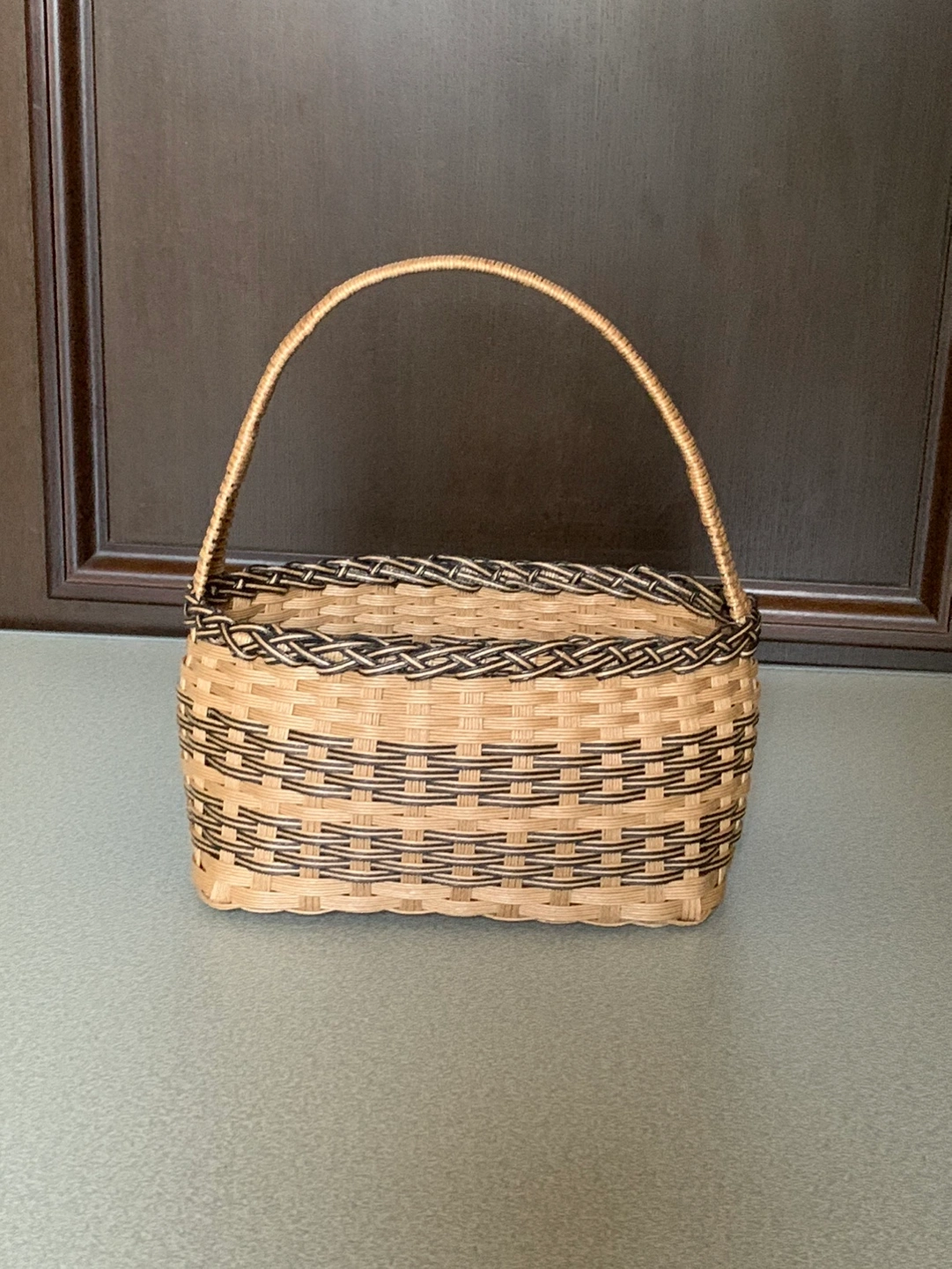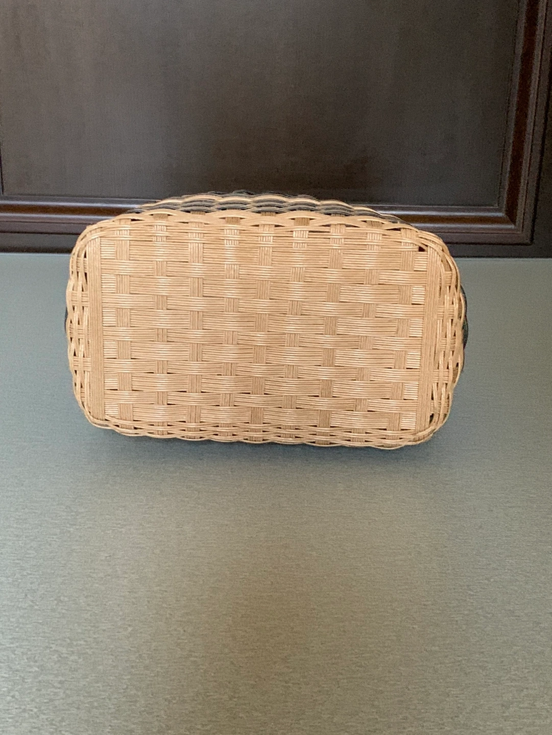 ご覧いただきありがとうございます。ハンドメイド、クラフトバンドで作った籠バッグです。 大きさ 縦 10cm(持ち手含まず) 間口横 20cm 間口奥行 12cm 底面横 19cm 底面奥行 12cm 持ち手まで 22cm 多少の誤差はご了承下さい。 小物入れなどにもお使いいただけるサイズです。 素人のハンドメイドにご理解のある方、ご検討宜しくお願い致します。 尚、お値引きは不可でお願い致します #ハンドメイド #エコクラフト #クラフトバンド #クラフトテープ #かごバッグ #かご #カゴバック #籠バック