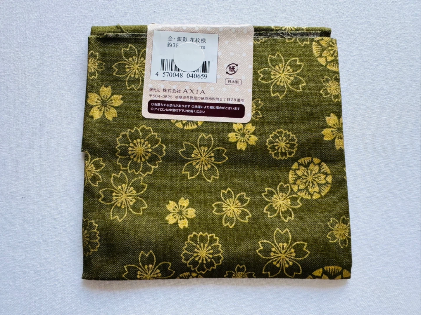 カットクロスです。 ・色:緑、金色 ・柄:花柄 ・サイズ:約35cm ・日本製 中古品であることご了承ください