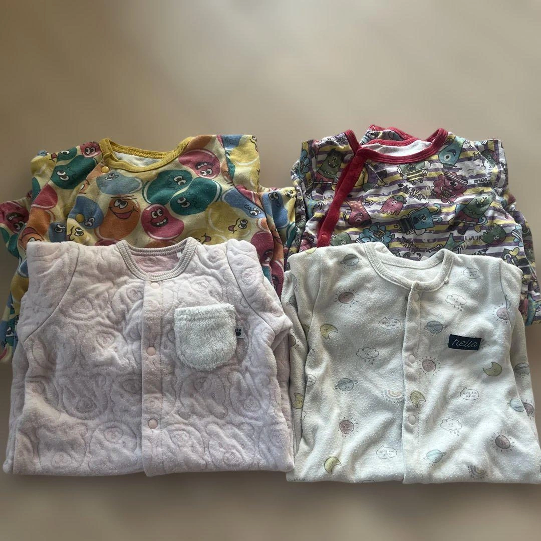 カバーオール4点まとめ売りです。 小さな毛玉や汚れがある部分がありますので、画像にてご確認ください。 お下がりでもらったものや新しく購入したものがありますが、中古でも気にならない方にお譲りできればと思います。ご希望の方はお気軽にご連絡ください。