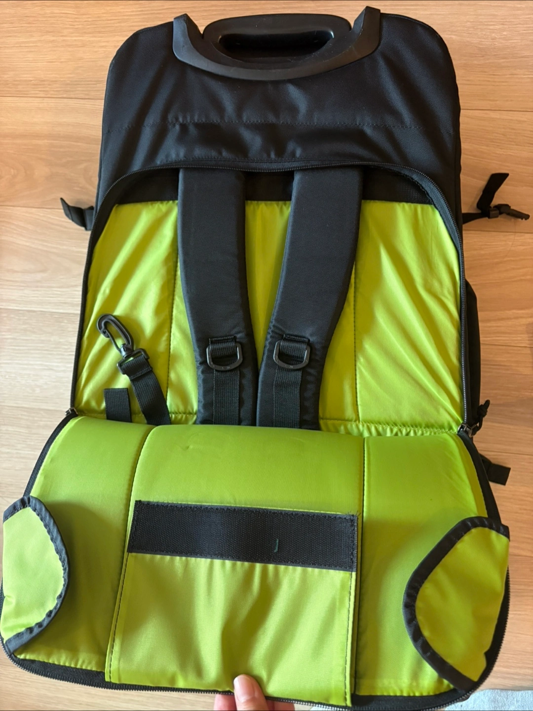 ブラックのKarrimorキャリーケースです。 サイズは写真ご確認ください。 8年ほど前に購入しましたが、使用したのは10回以下です。キャリーケースを背負えるようになっていますが、一度も背負って使ったことはありません。 タイヤのところはキズなどがありますが、動作は問題ありません。 全体的に綺麗な方だと思いますが、自宅保管なのでご了承ください。 付属のリュックはついてきません。 キャリーケースのカバーはついてきます。(下部のポケット部に収納) 他でも出品しているため、重なってしまった場合はご了承ください。 - ブランド: Karrimor - カラー: ブラック - 内装カラー: グリーン - 特徴: メッシュポケット付き - タイプ: キャリーケース ご覧いただきありがとうございます。