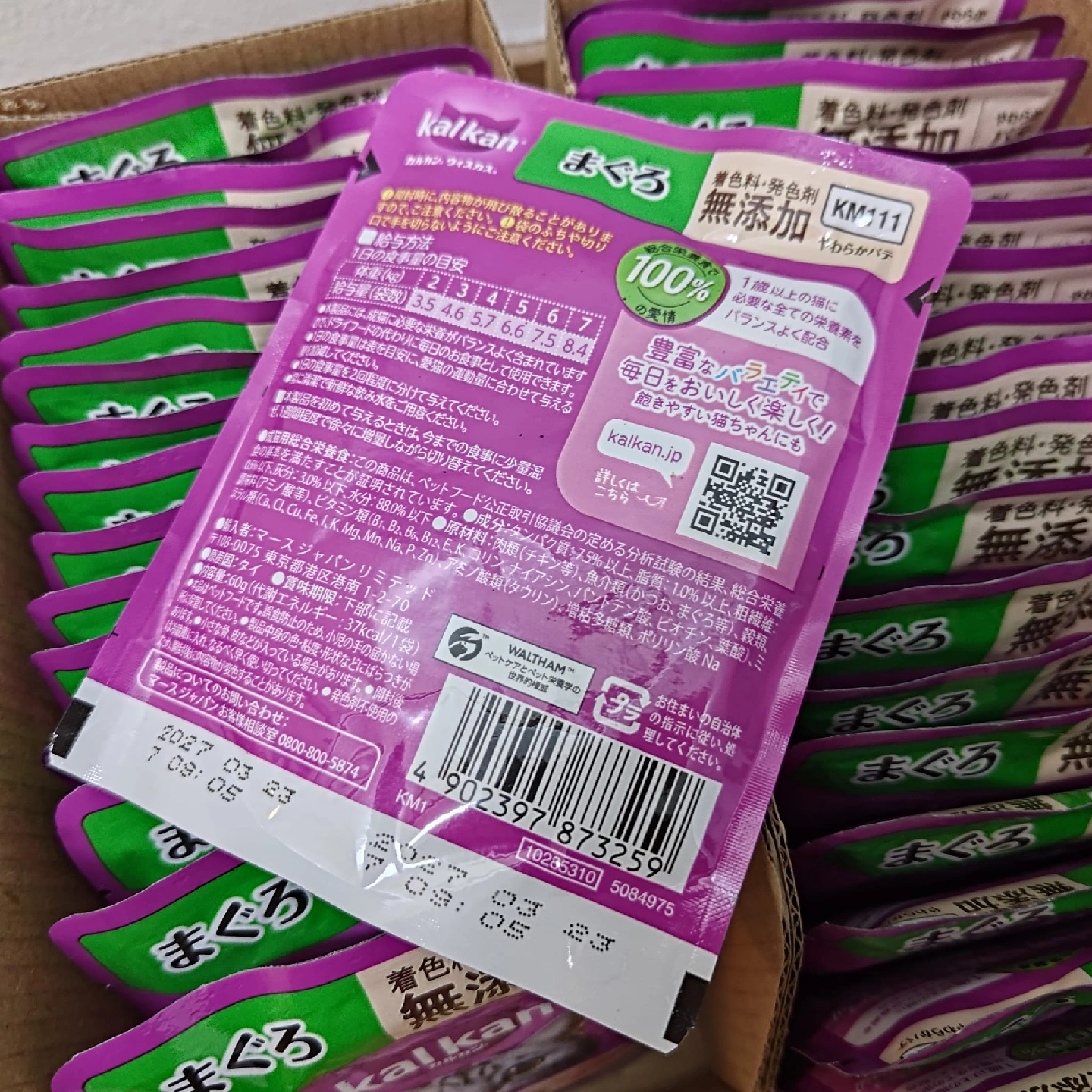 カルカンの猫用パウチのセットです。 ・味:まぐろ ・内容量:60g ・無添加 ・賞味期限:2027年3月 明大前駅、下高井戸駅、松原駅、もしくはその周辺でお渡しいたします。 ご不明点があればお気軽にご連絡ください。