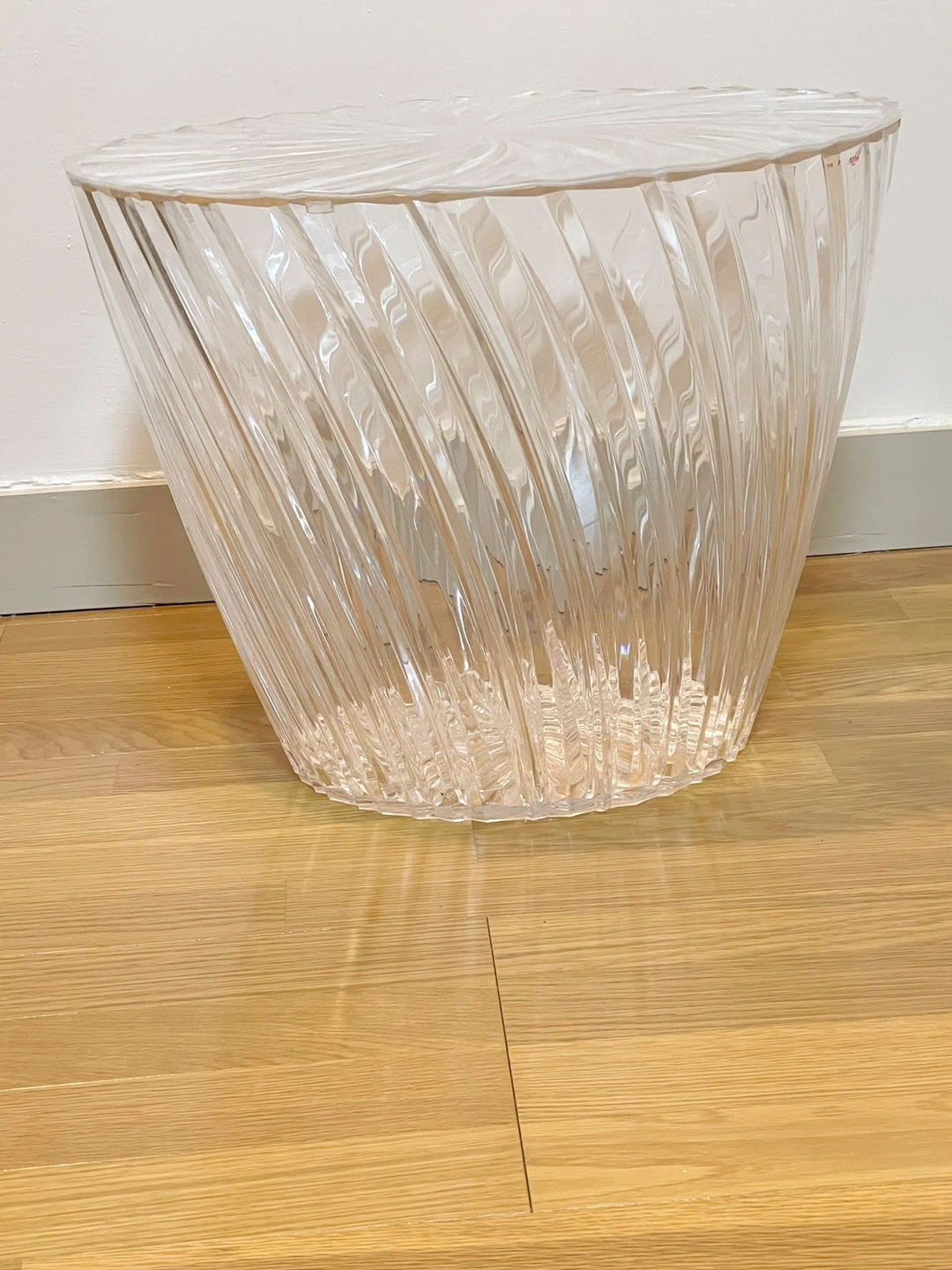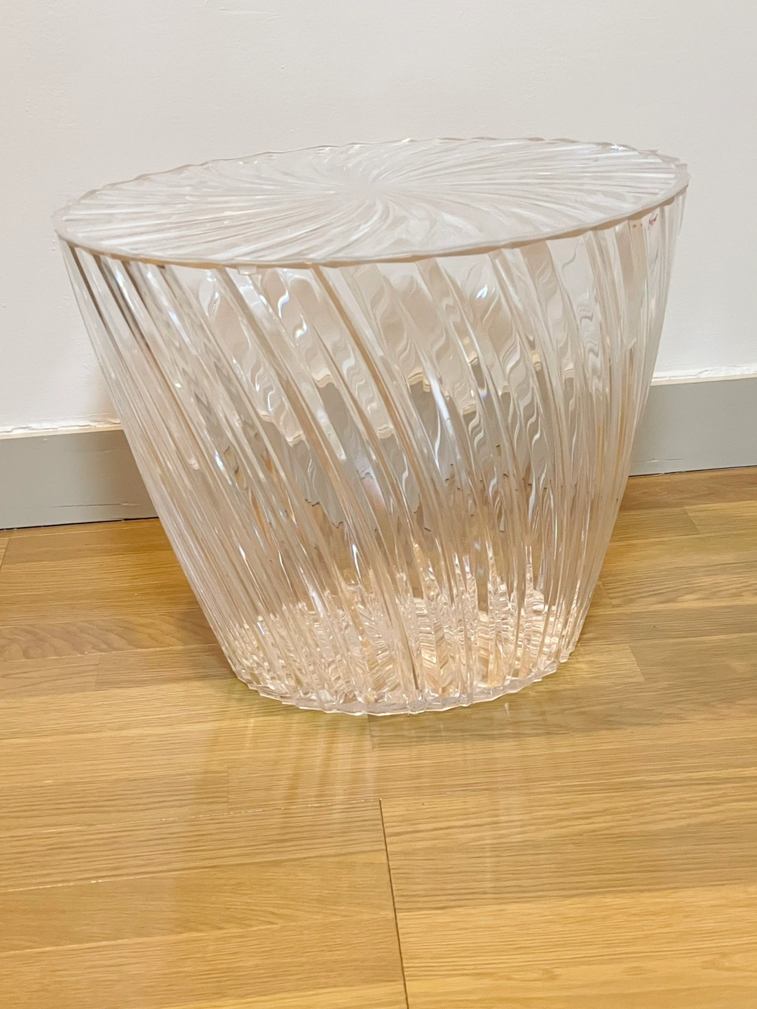 虹色に輝く一筋の光のように、はっとするような魅力を放つSPARKLEは吉岡徳仁によるスツールとローテーブルのコレクションです。プラスチック素材で内側と外側の両方に作った独特のひだが効果的に光を反射させ、ホームシーンに宝石のような輝きを添えます。傷や衝撃にも強いのでアウトドアユースにも適しています。 こちらはローテーブルです。トップを外して収納ボックスを兼ねたご使用も可能です。・以上他サイトから引用 *カラー クリスタル *サイズ 幅 45cm 奥行 45cm 高さ 35cm 重量 4kg *素材 アクリル樹脂 *状態 写真10枚目を拡大してご覧下さい。 蓋の一部にヒビがはいっております。 又、商品の性格上細かなスレや傷はございますが、その他には目立ったダメージも無い美品です。 太陽光の反射がとても綺麗で引き立ちますが、紫外線による黄変も心配で余り光の当たらない様にしておりましたので、変色はございません。 しかし、黄変の治し方は検索で出てきますので心配ありません。 *購入先 ヤマギワTOKYO 写真最後掲載 状態の判断は個人差がございます。 中古品として許容できない方、 神経質な方、完璧をお求めの方のご購入はご遠慮下さいませ。 又、購入前に充分な確認もせず 後から販売者に責任を転嫁し、 一方的な評価を下される方もお断り致します。