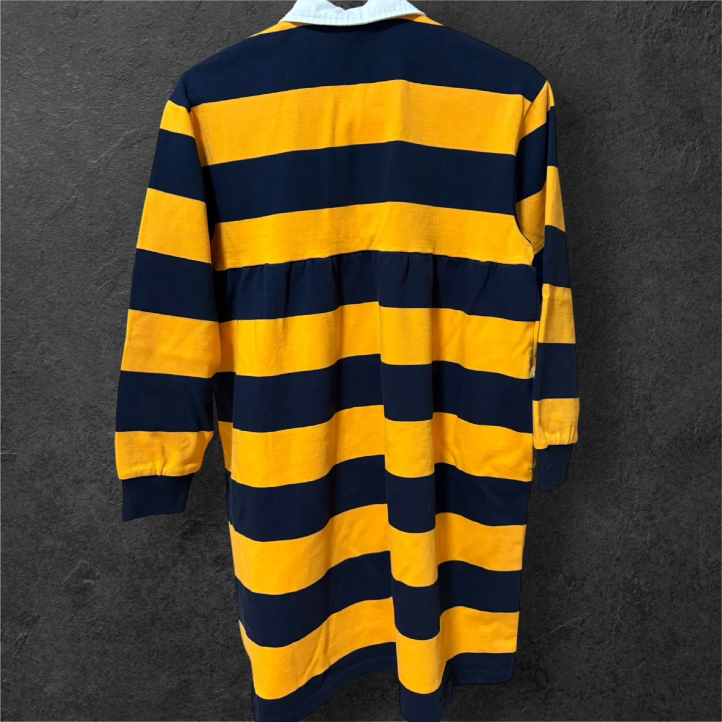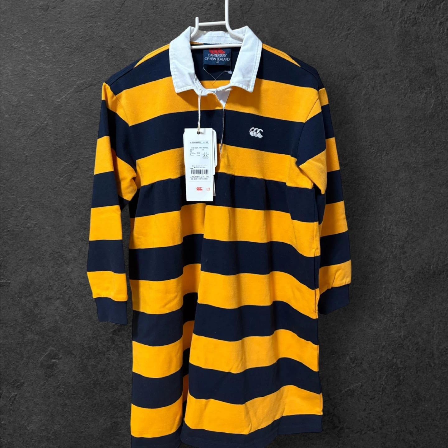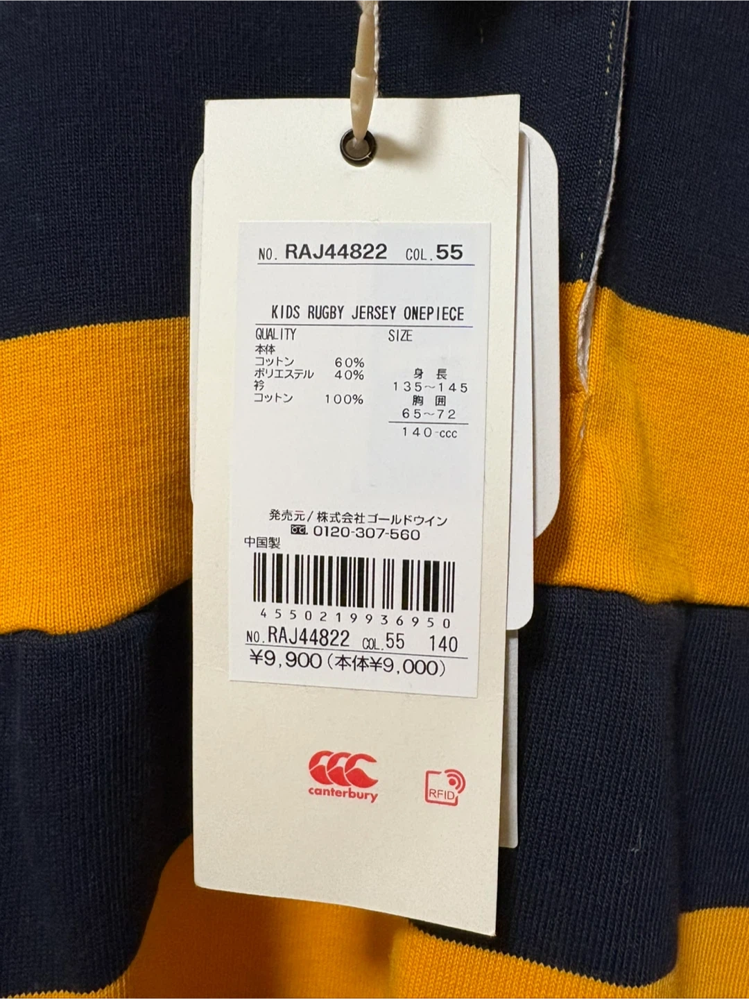 先月おじいちゃんが孫に買ってくれたののの、よく見ると『ワンピース』であったため、出品します。 よろしければご興味ある方にお譲りできれば幸いです。 なお、我が家にはペットおらず、また喫煙者もおりません。 【商品紹介】 ネイビーとイエローのストライプデザイン、綿混素材のキッズラグビーシャツ。 - ブランド: Canterbury - 商品名: キッズラグビー ジャージ ワンピース - サイズ: 140 - 素材: 綿60%、ポリエステル40%、リブ部分:綿100% - カラー: ネイビー/イエロー ご覧いただきありがとうございます。