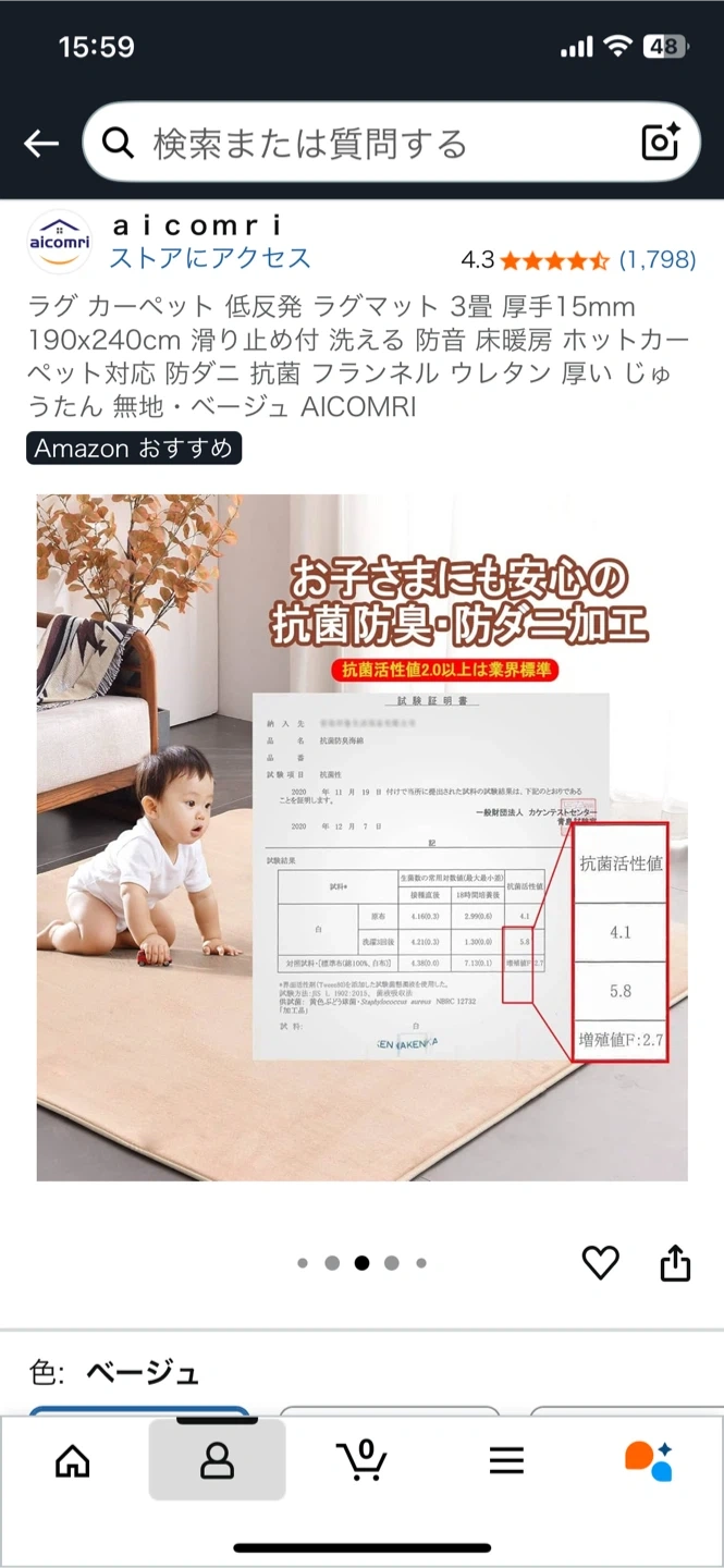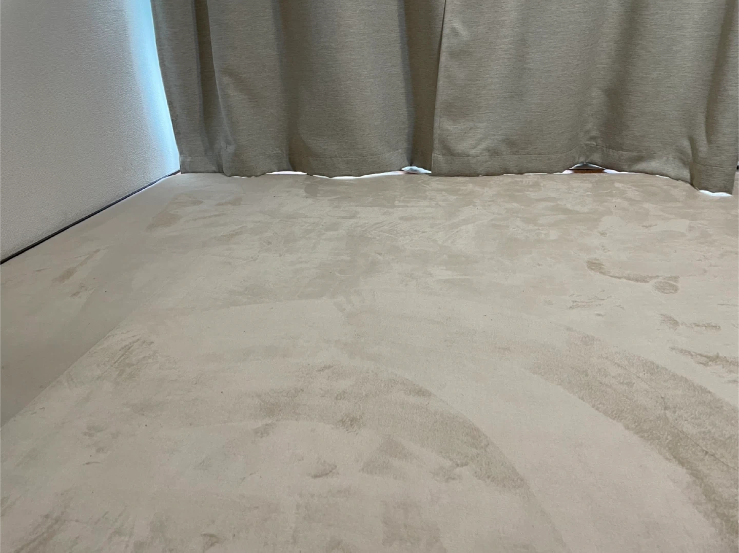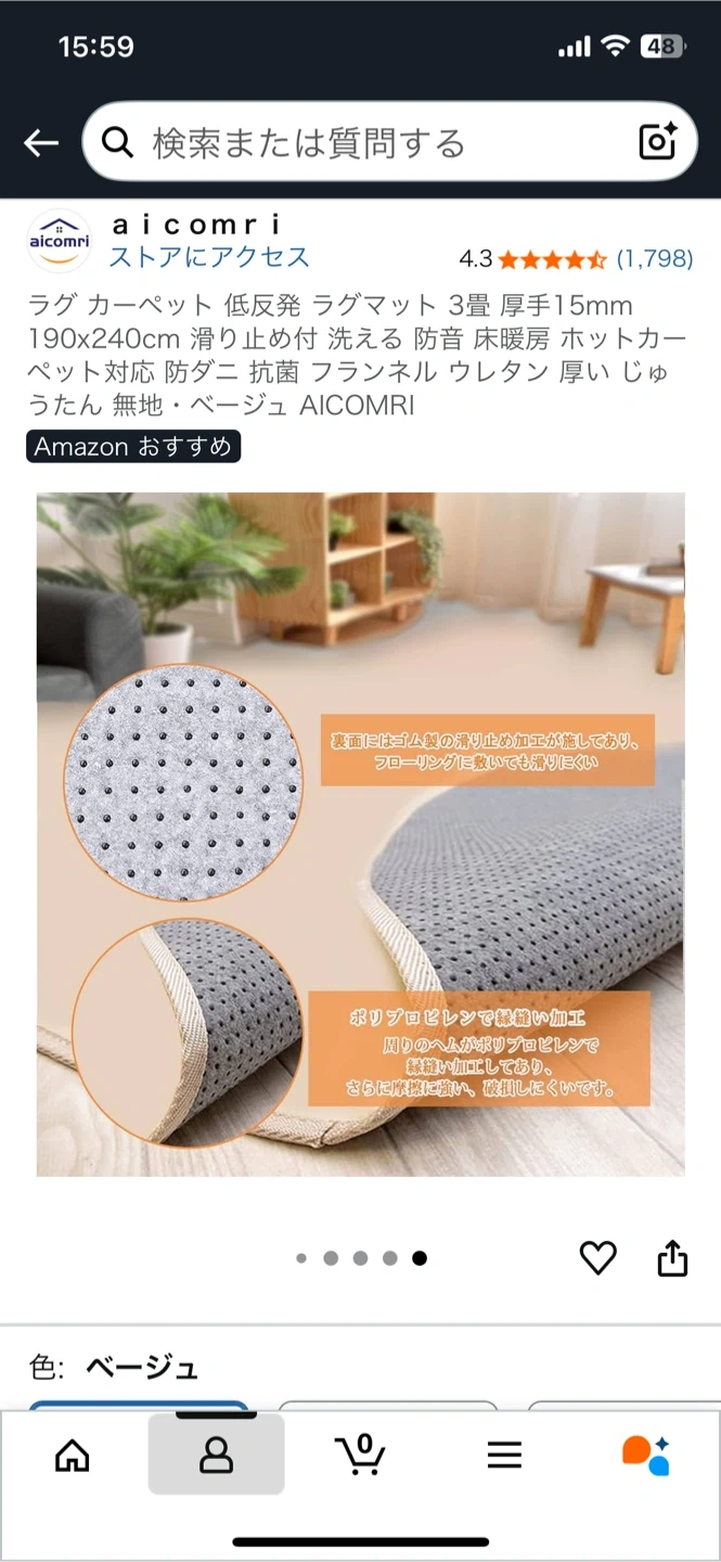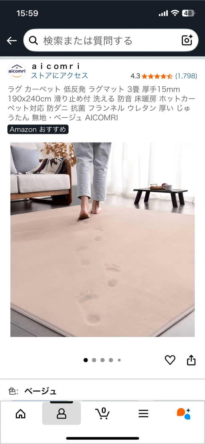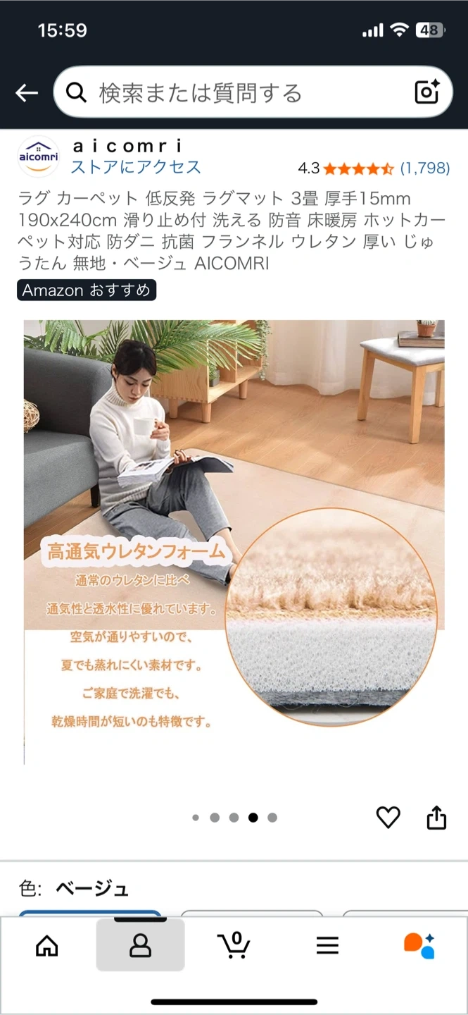 ベージュのカーペットです 約一年使用しました。 このカーペットの上に2/3はもう一枚カーペットを重ねて使っていたので汚れ少ないですが、端の方は使用感があります。 中古品が気にならない方よろしくお願いいたします。 カラーはベージュとありますがピンクベージュに近いです。 【情報】 サイズ:約190x240cm 素材:表生地 ポリエステル100%、詰め物 ウレタンフォーム、裏生地 不織布(ポリエステル100%)、縁素材 ポリエステル100% 【状態】 使用感あり