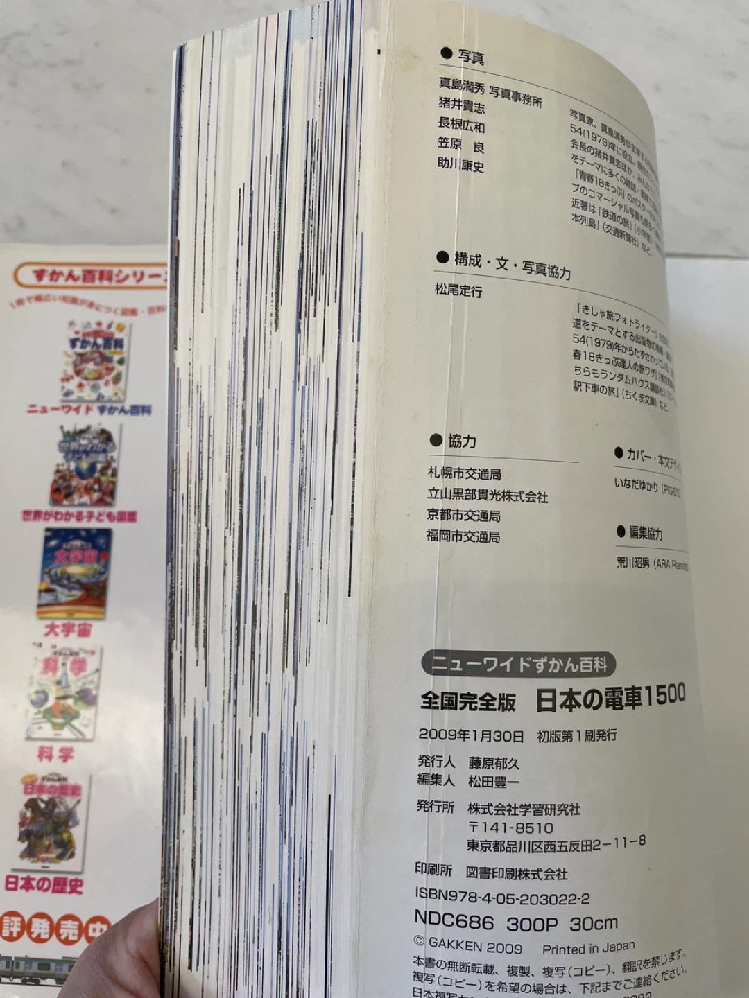 日本の電車1500の図鑑です ・ブランド:Gakken ・書籍名:日本の電車1500 ・定価:3,500円 ・状態:使用感あり 中古品であることご了承ください。 外カバーに破れがありテープでとめています。中は特に大きなダメージはありませんが、最後のページだけ折れのあとがあります。