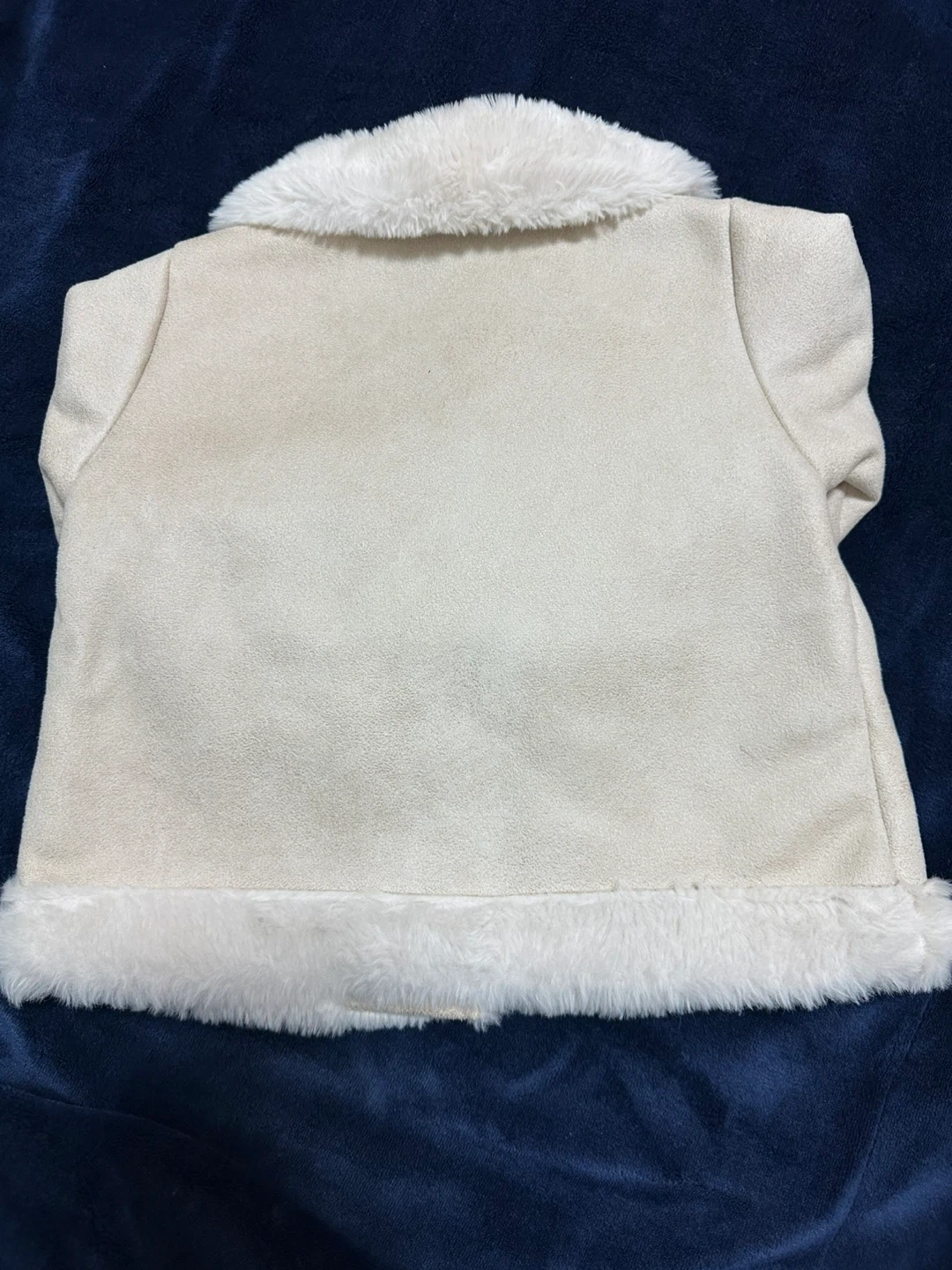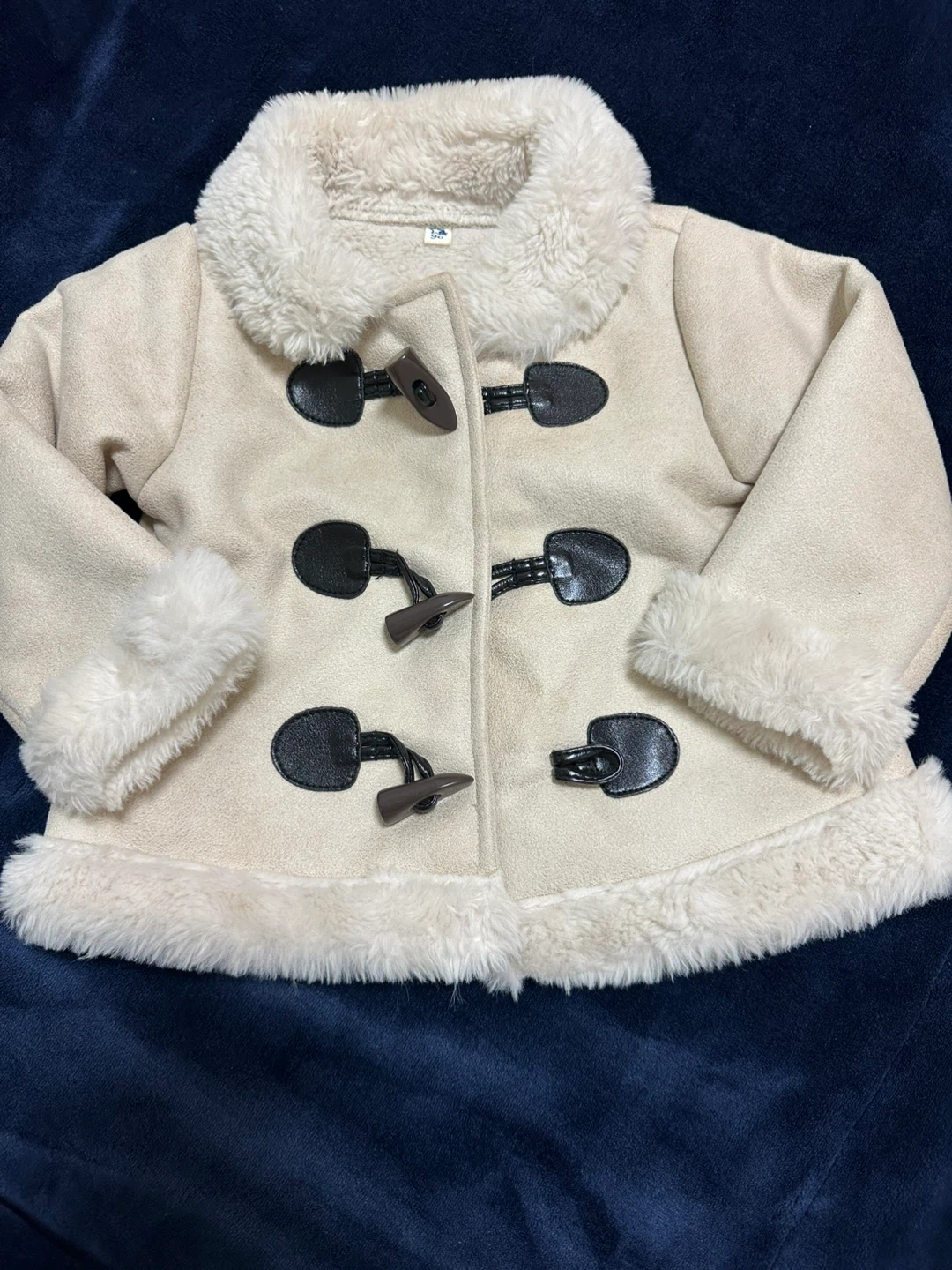 キッズのダッフルコートです ・カラー:アイボリー ・サイズ:90 ・素材:スウェード調 ・ファー襟、袖口、裾にファー ・状態:使用感少なめ ご不明点があればお気軽にご連絡ください