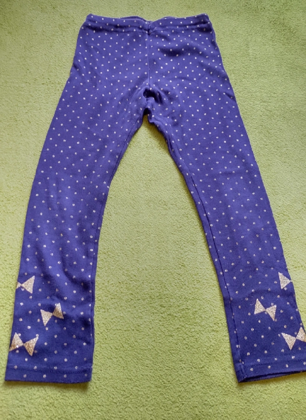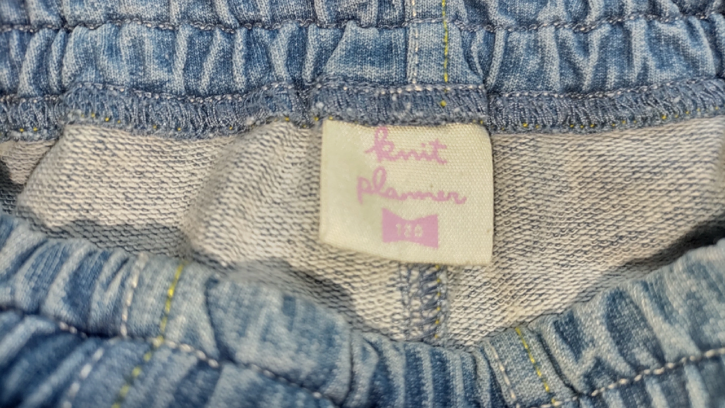 キッズのパンツ2点セットです ・サイズ:120 ・素材:綿100% ・色:デニム、紺水玉 デニムの裾は折り返すと黄色のボーダー地が裏打ちされていて可愛いです 中古品であることご了承ください