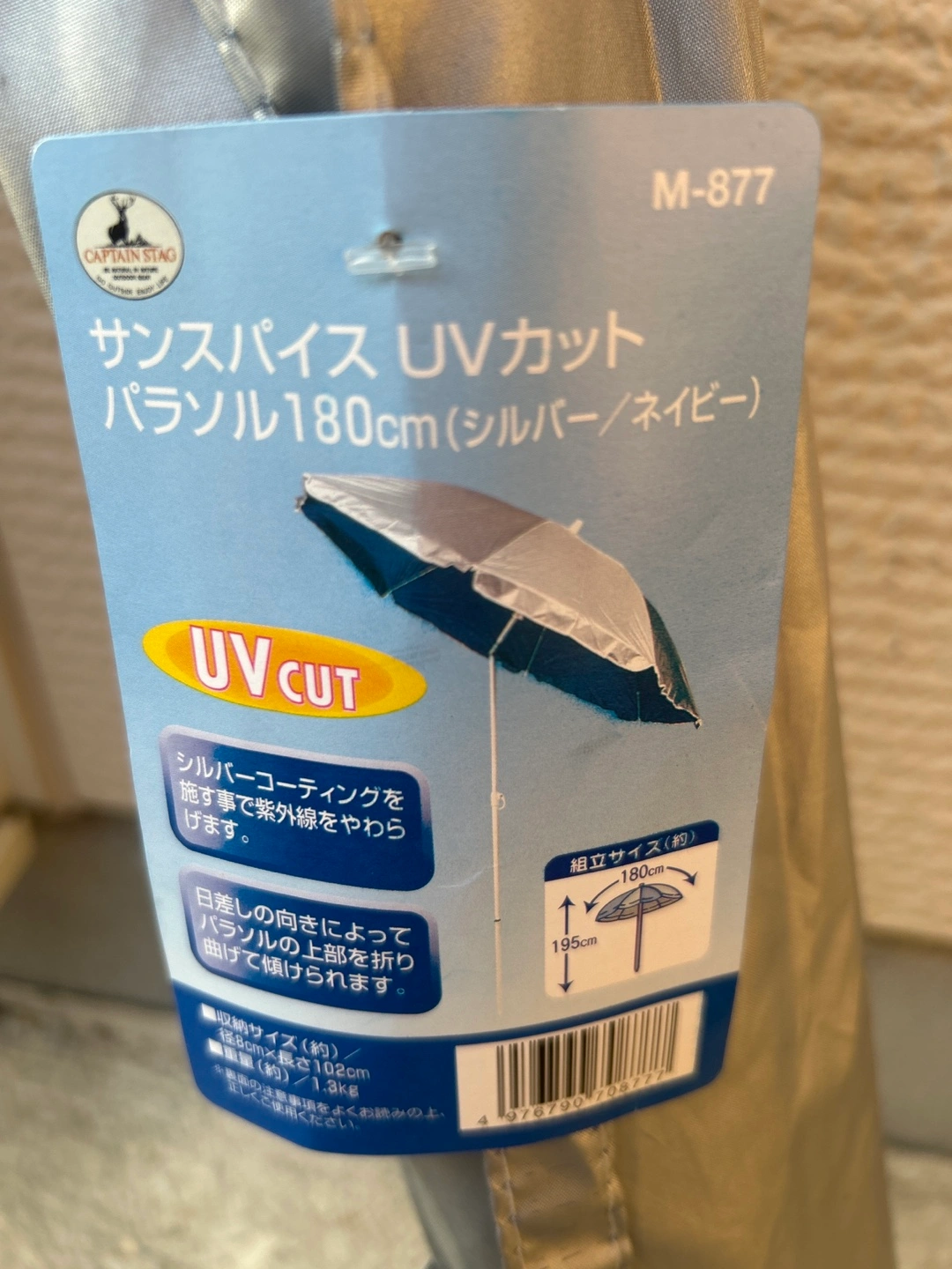 キャプテンスタッグのパラソルです。 【情報】 ブランド:キャプテンスタッグ 型番:M-877 サイズ:180cm カラー:シルバー UVカット 角度調整機能あり 【状態】 未使用品ですが、納戸でずっと保管していた為、パイプの接合部にうっすらサビがあります。使用に問題はないと思います。 また、不具合がないか確認しようとしたところカバーの綴じ紐が切れてしまいました。本体は大丈夫ですが、[譲ります(無料)]に変えさせていただきました。 ご不明点があればお気軽にご連絡ください