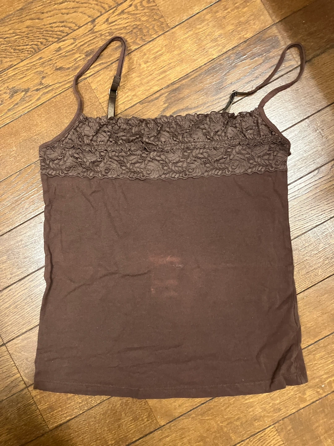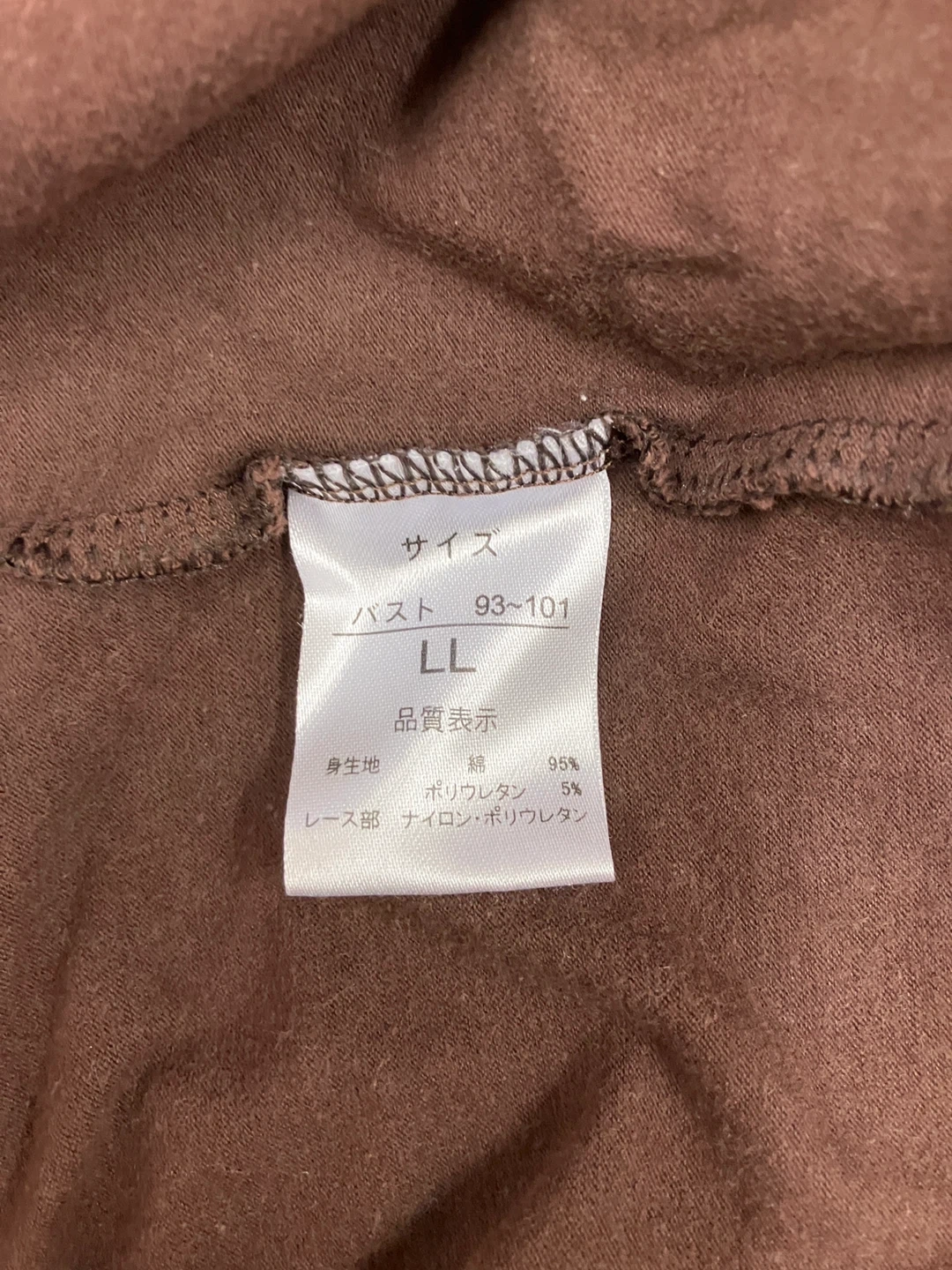 キャミソールです ・色:ブラウン ・サイズ:LL(バスト93〜101cm) ・素材:綿95%、ポリウレタン5% ・レース部分:ナイロン、ポリウレタン ・シミ、小さなキズあり 中古品であることご了承ください
