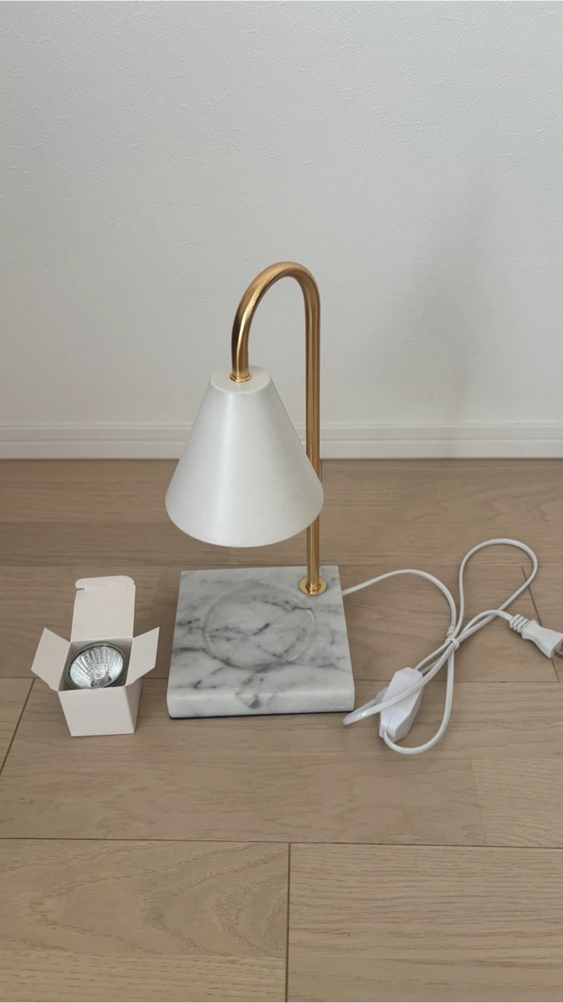 キャンドルウォーマーランプ ブラケットライト付き(替え調光電球も1つ付き) 大理石と金のアロマキャンドルランプで、お部屋に置くだけでとってもオシャレな雰囲気になります。 傷や汚れがありますので、ご理解いただける方に。 キャンドルウォーマーは灯調節によりゆっくりと香りが広がるので、長時間使用の方にオススメです☆ 火を使わないので火事の心配もなく、お子様がいらっしゃる方にもオススメです⭐︎ - タイプ: アロマキャンドルランプ - 素材: 大理石、金属 - 色: ホワイト、ゴールド ご覧いただきありがとうございます。