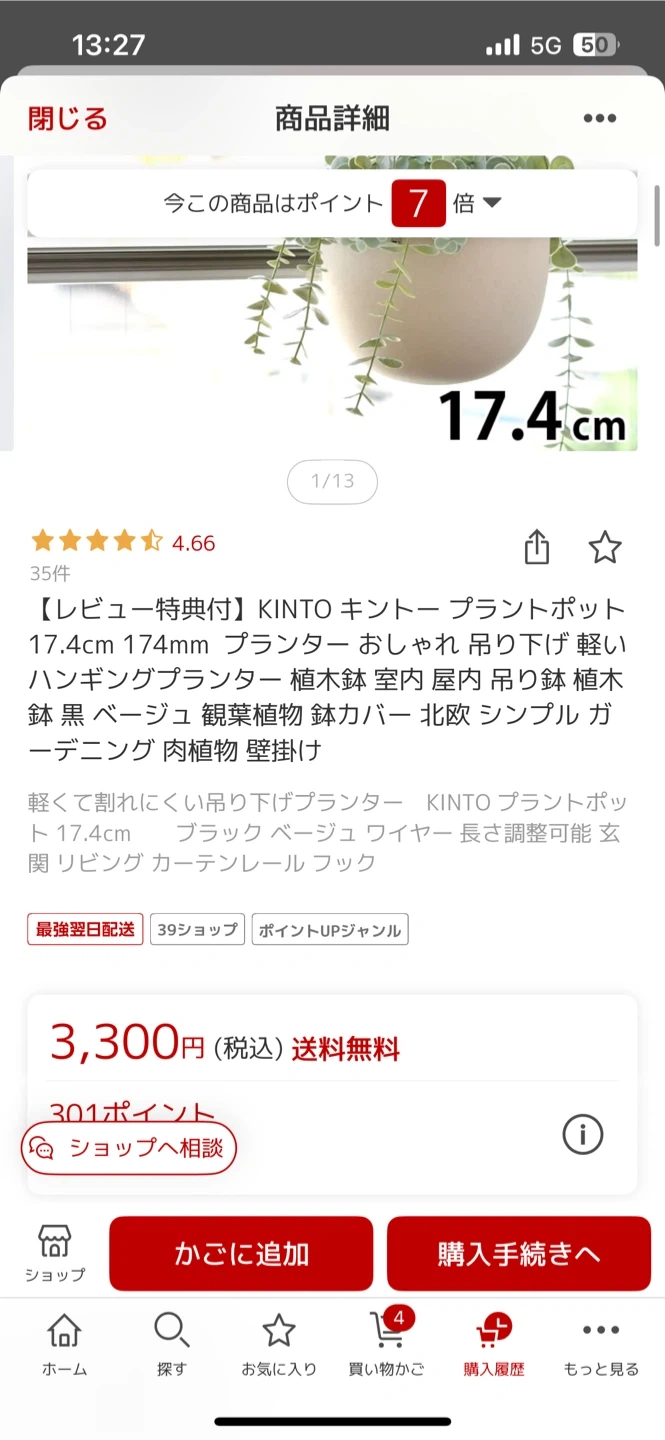 キントーのプラントポットです 【情報】 ブランド:キントー サイズ:約17.4cm カラー:ベージュ 【状態】 使用感少なめ 中古品であることご了承ください