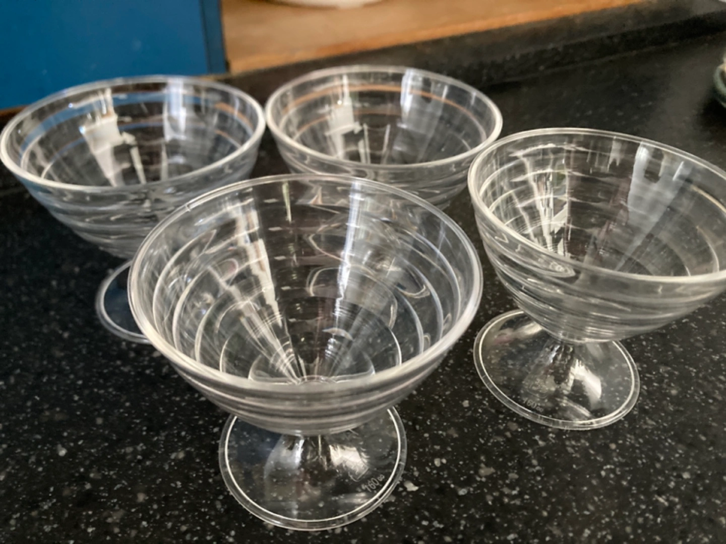 クリアプラスチックのカップを4個セットです。 ガラスではないので、小さなお子様にも使えます。