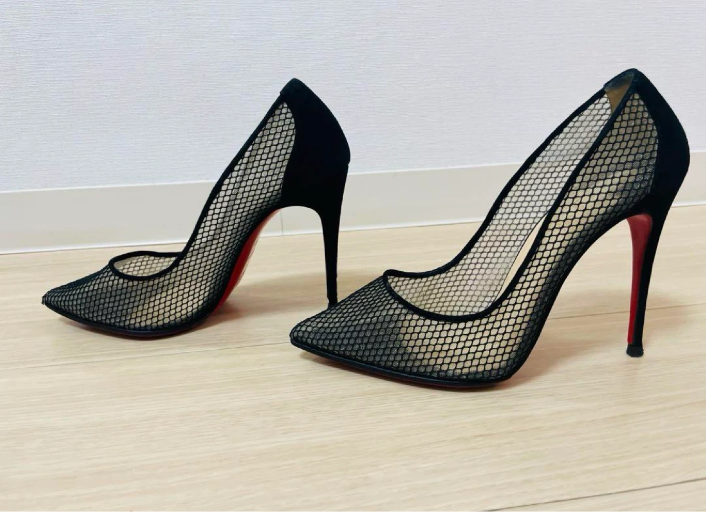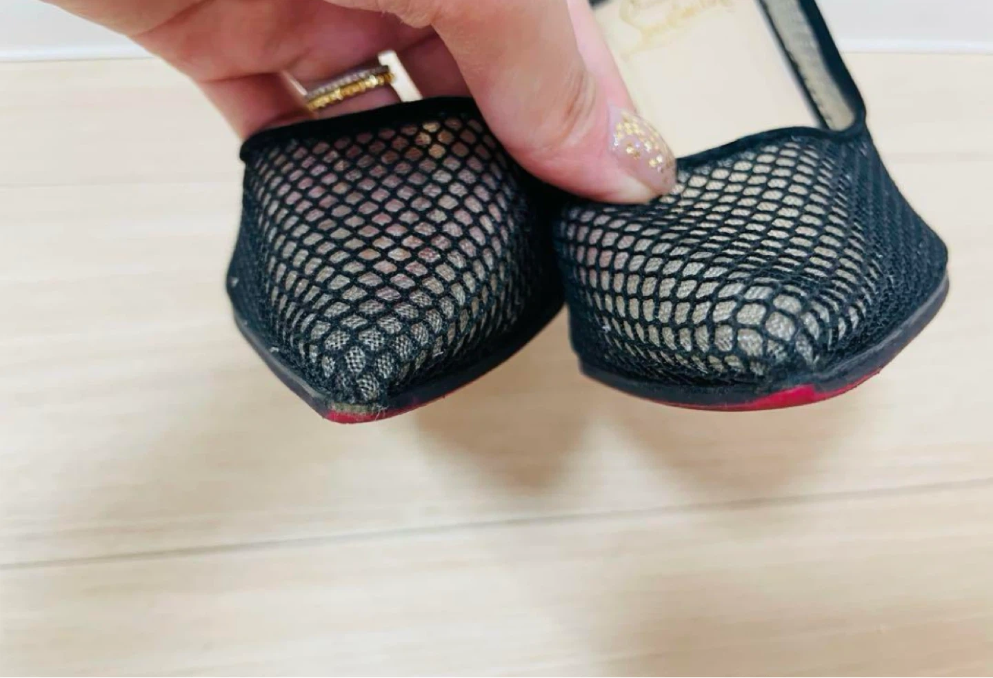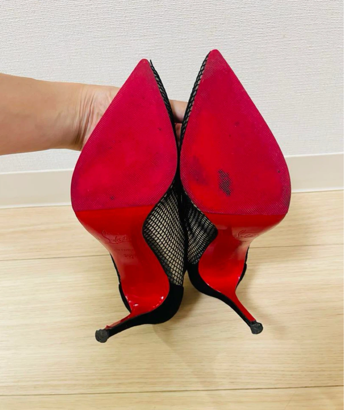 クリスチャンルブタンのパンプスです ルブタン 36 1/2 メッシュ スエード パンプスです! 数回着用しました! 先端のメッシュの部分が少し解けてしまっておりますが、気にならさらない方に! メッシュのほどけはここのみでかなり美品です! (とても小さいので全然気にならないのと思いますm(_ _)m) ピンヒールの右足の内側、赤部分が少しだけ剥がれておりますが、こちらも内側ですので目立つ傷ではありません。 お写真などもご確認の上ノークレームノーリターンでお願いできる方のに購入お願いします☺︎ ・ブランド:クリスチャンルブタン ・サイズ:36 1/2 ・カラー:ブラック ・デザイン:メッシュ ・状態:使用感あり、ヒールのゴム部分に傷みあり 中古品であることご了承ください