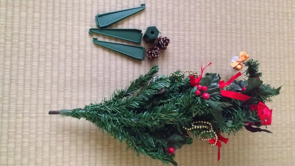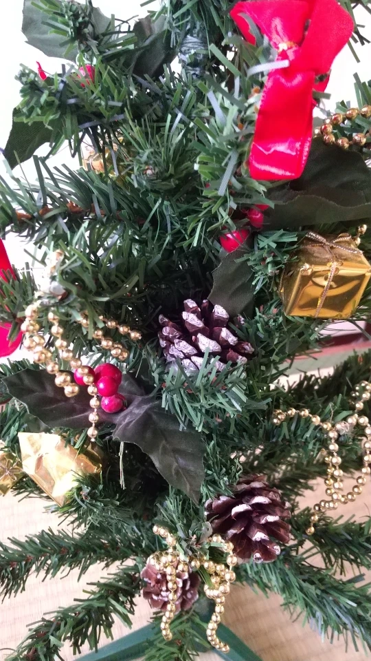 ★★受渡場所は、近辺の自転車で行ける範囲でしたら、伺いますので、場所については、ご相談くたまさいませ!! 軽量で、 組み立てもとても簡単!! 箱から出して、足だけ差し込んでいただき、枝を拡げれば、完了!! 枝は、針金のように、自由自在に折曲できるので、飾るスペースに合わせてどうぞ! ■サイズ■ 高さ→約64~5 最大の横幅→約31~2 組み立て部品(脚)の横幅→12 縦→13 ■外箱サイズ(経年劣化あります)■ 44×10×10 ※素人採寸のため、誤差はご容赦くださいませ いただいた当時は毎年飾っておりましたが、ここ3~4年は、箱にいれたまま自宅保管しておりました。 まつぼっくりの飾りが2個とれていますが、拡げた枝に乗せていただければ、問題がないかとおもいます。 また、付属の箱よりも背が高いため、トップを曲げて、収納することになります。