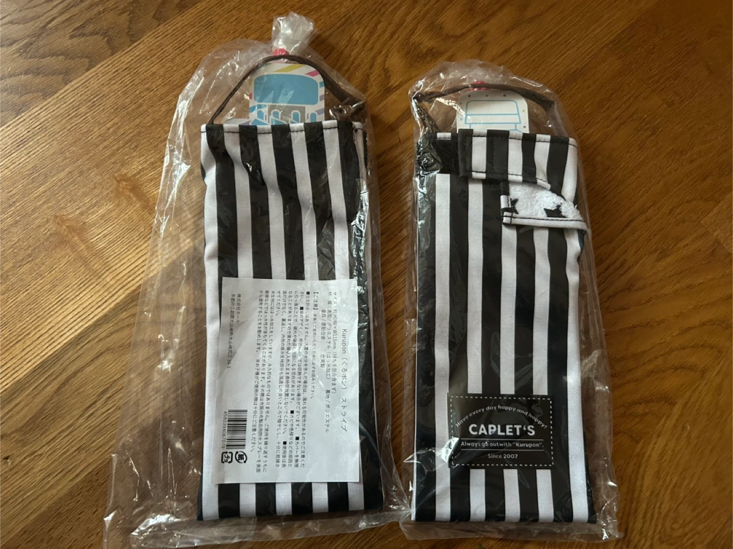 クロポンの傘カバーですが ペットボトルカバーとしても使えます ・ブランド:クロポン (Kurupon) ・柄:ストライプ ・サイズ:約H260×W115mm(持ち手部分含まず) ・素材:ポリエステル(はっ水加工)、亜鉛合金 ・製造年:2007年以降 中古品であることご了承ください