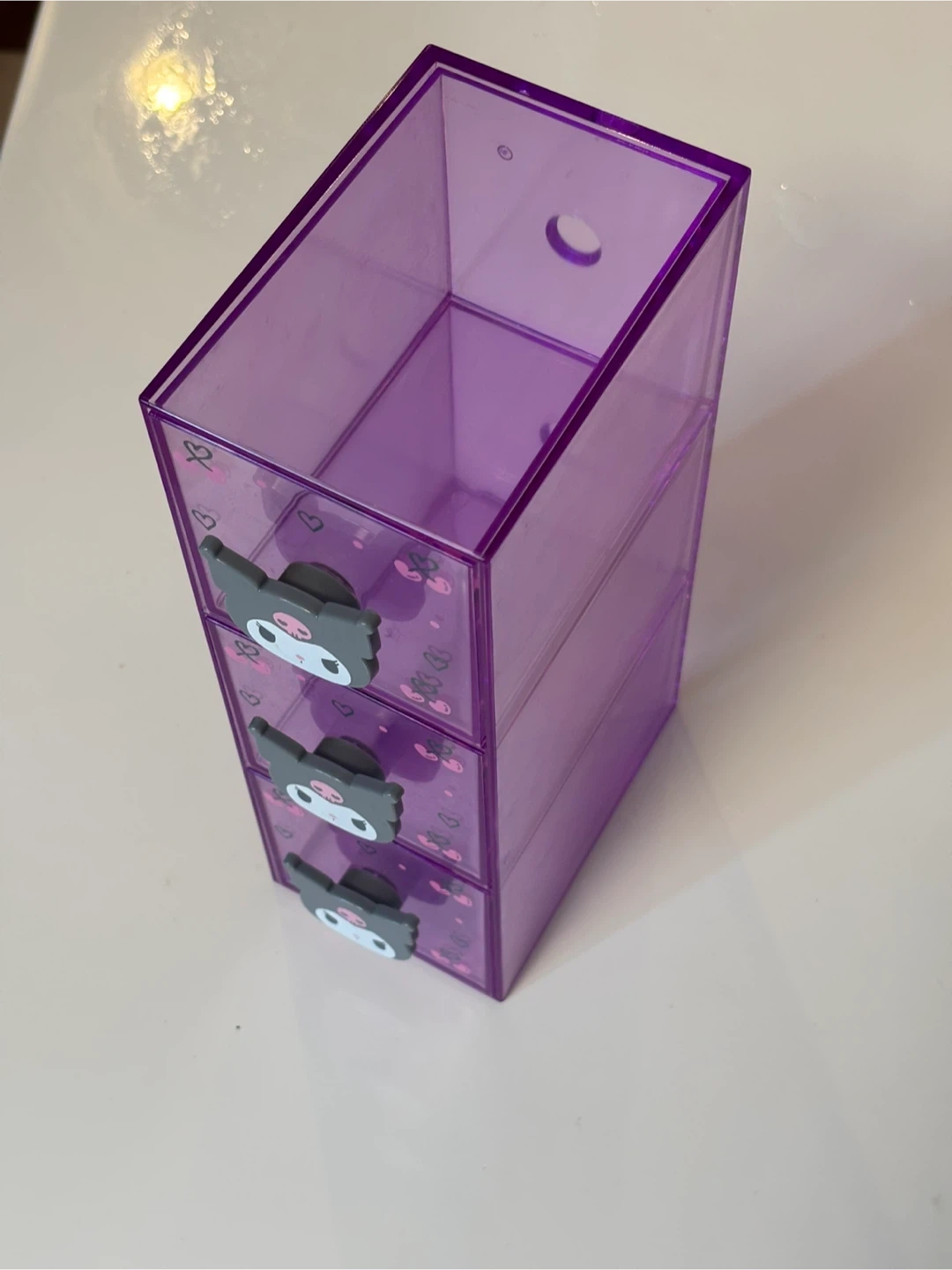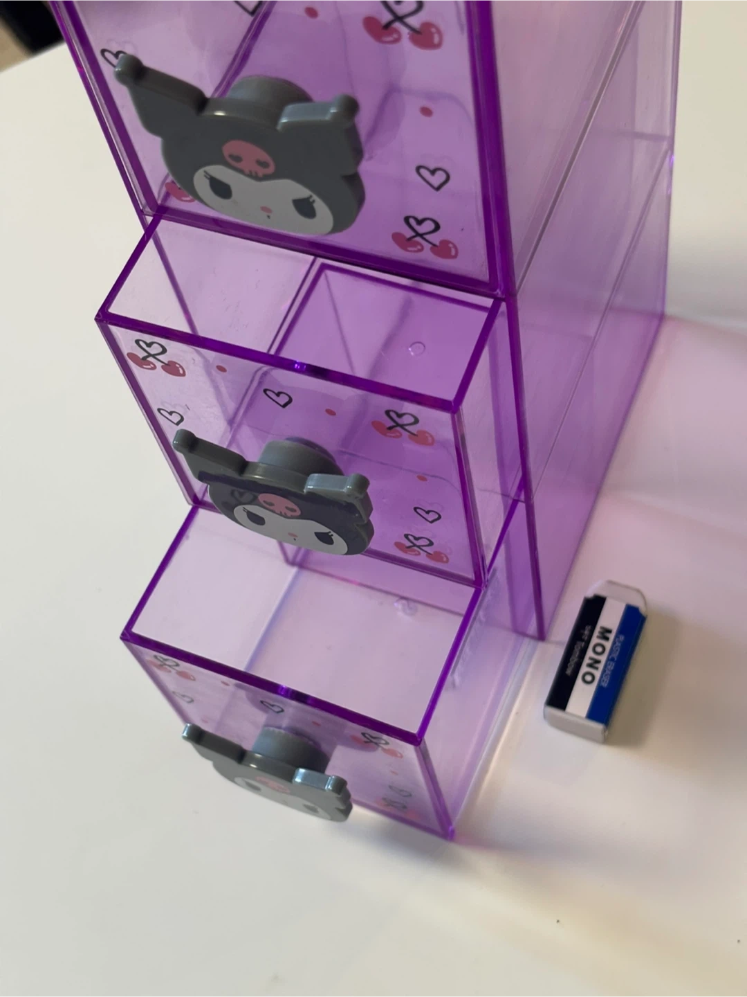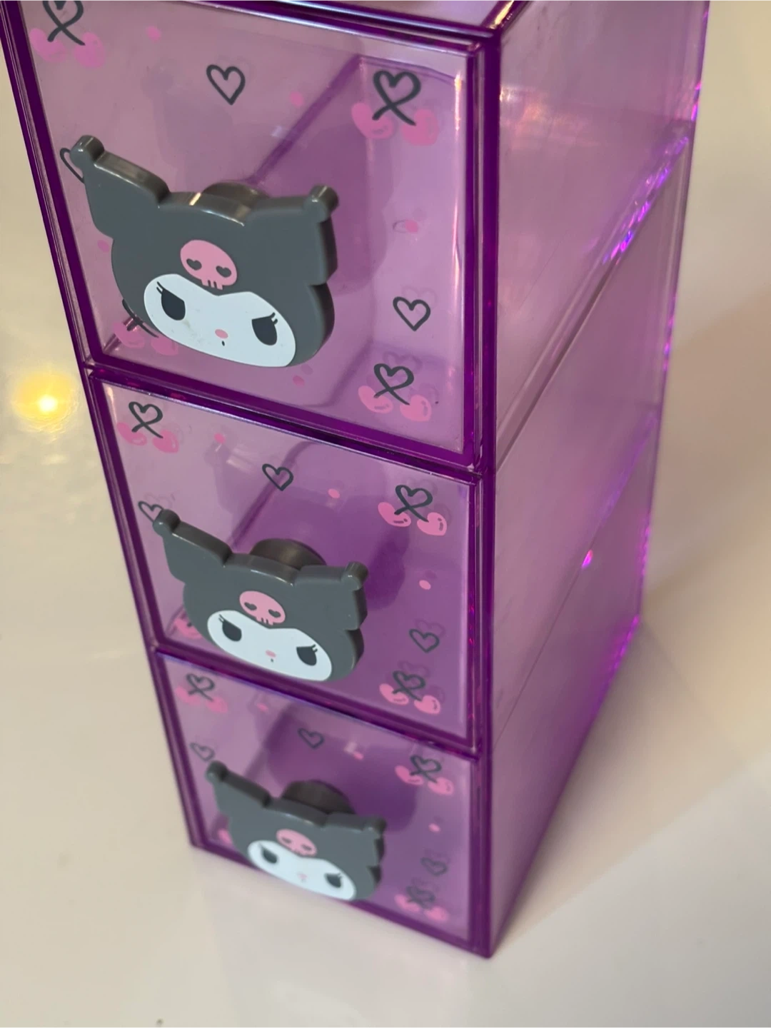 ホーム川崎市 高津区のフリマ川崎市 高津区のインテリア・家具諏訪のインテリア・家具クロミ チェスト 3段オリガ諏訪39.4℃あたたかさクロミ チェスト 3段インテリア・家具 · 1,300円クロミの3段チェストです。 小物にピッタリ! ・カラー:パープル ・3段 ・引き出しにクロミの顔のモチーフ付き ・目立つ傷や汚れなし 中古品であることご了承ください