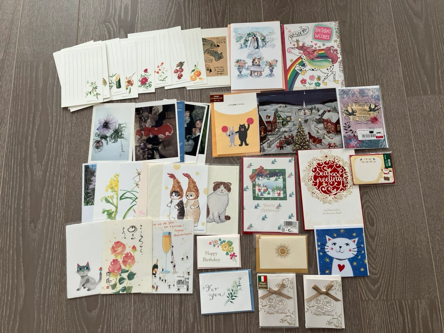 グリーティングカードとポストカードのまとめ売りです ・種類:誕生日カード、クリスマスカード、サンキューカードなど ・状態:未使用品、一部に値札シール付き