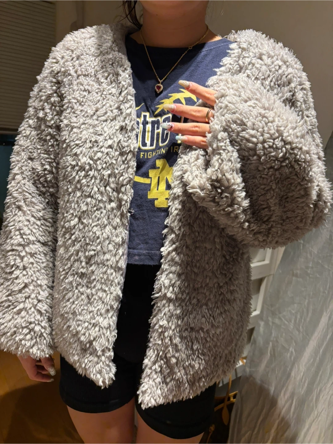 グレーのボアジャケット