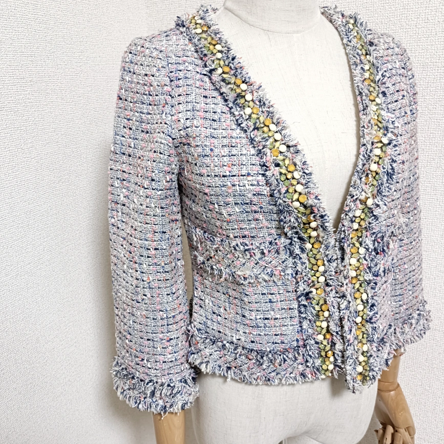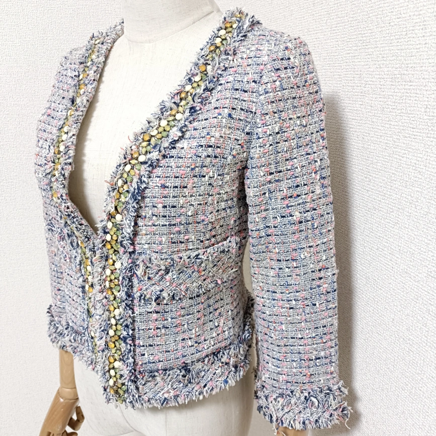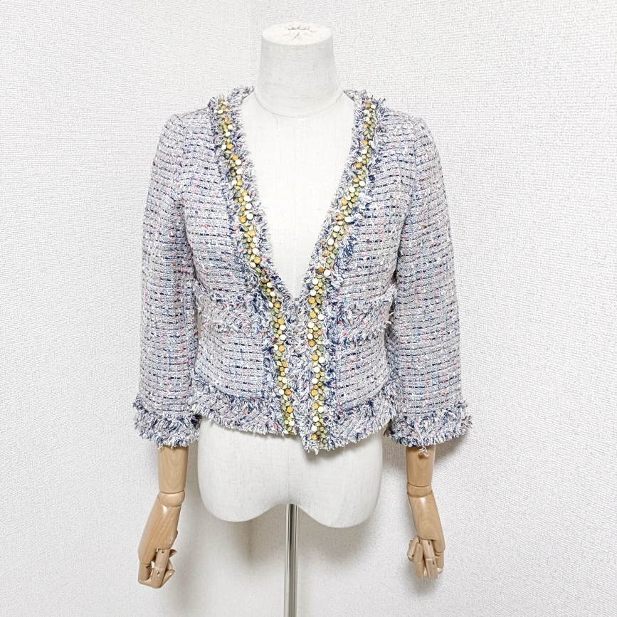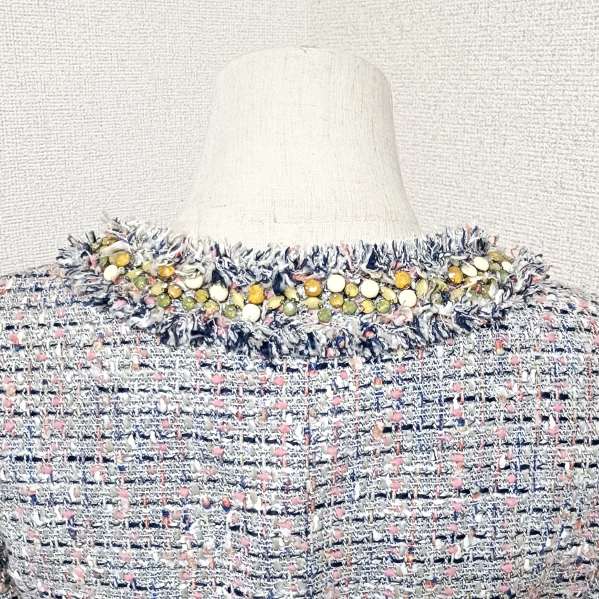 □商品名□ 美品 ツイードノーカラージャケット ブレザー アウター マルチカラー ビジュー 華やか 上品 36 レディース □ブランド□ GRACE CONTINENTAL グレースコンチネンタル □表記サイズ□ 36 Sサイズです □実寸サイズ(cm) □ 【床置きサイズ】 着丈:43 肩幅:36 身幅︰42 袖丈:46 ※実寸につきまして多少の誤差はご了承ください。 ※表記サイズだけではなく実寸のサイズをご確認ください。 □カラー□ ホワイト×ネイビー×ピンク等 マルチカラー □コンディション□ 目立った汚れやダメージなど特にございません。 ※汚れはできる限り写真にて掲載しております。まずは画像をご確認ください。 どうぞよろしくお願い致します。 □商品管理番号□ B-L-4026