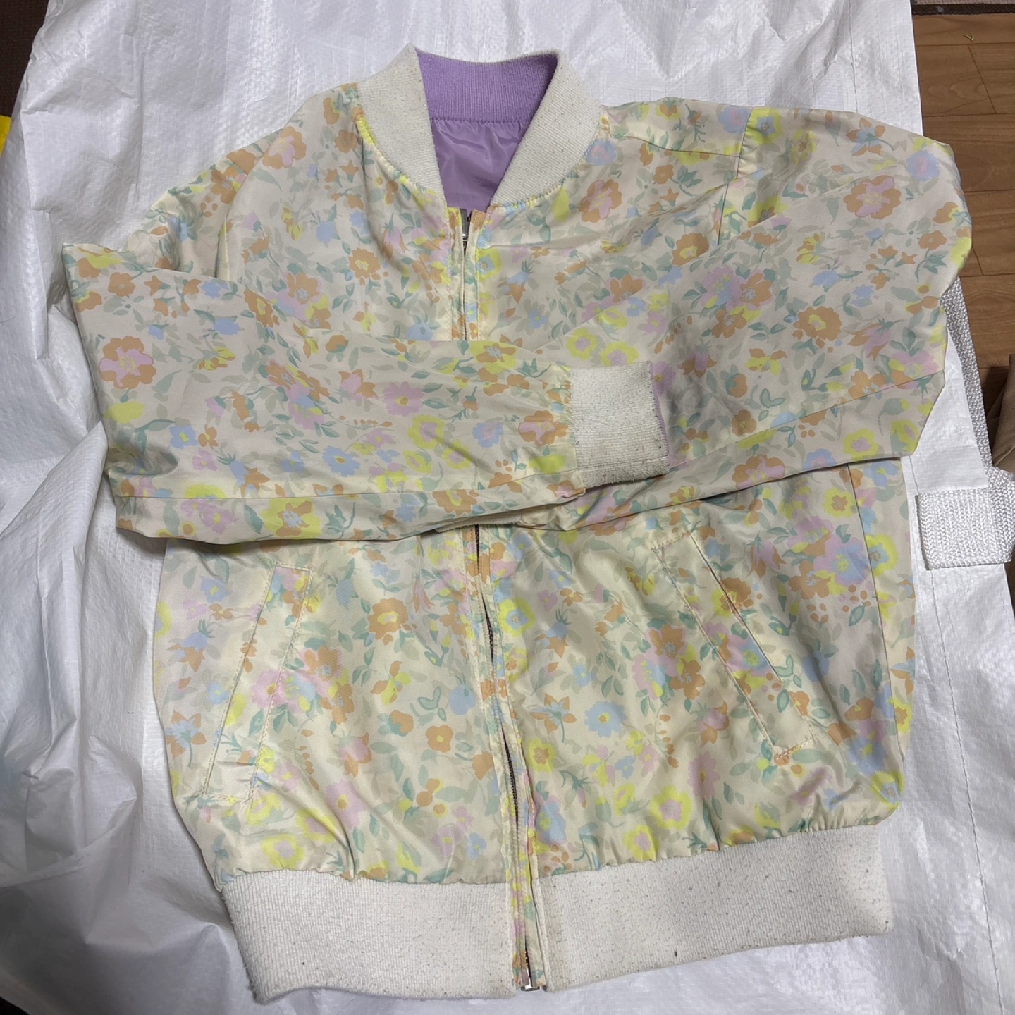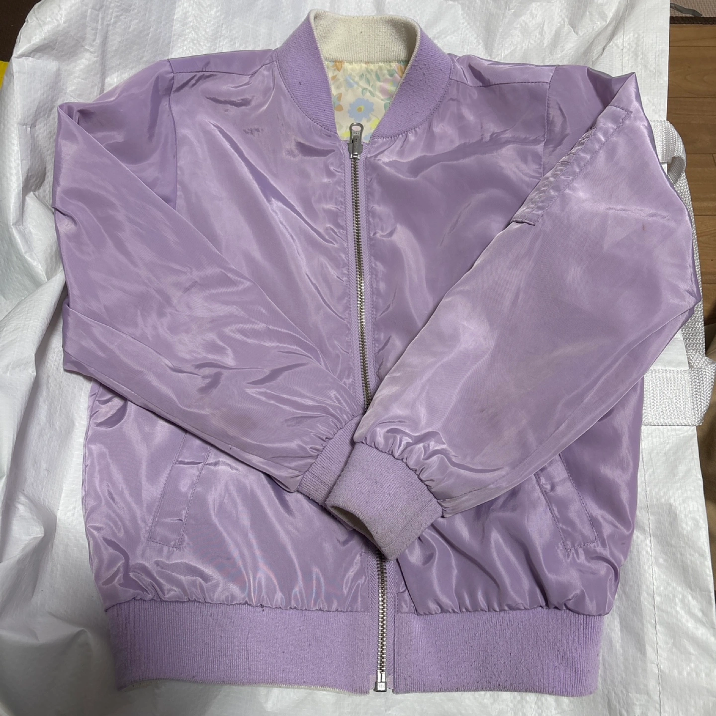 花柄とラベンダーカラーのリバーシブルジャケットです。 袖口、首元、裾のゴム部分は毛玉あり、娘は特に紫の面を表にして着用する事が多かったので、やや汚れあります。 また、タグに記名あります。 ご理解頂ける方のみ、よろしくお願い致します。 - デザイン: 花柄のデザイン - 色: ラベンダー - 素材: ナイロン混合 - スタイル: ボンバージャケット - 袖口: リブ編み ご覧いただきありがとうございます。