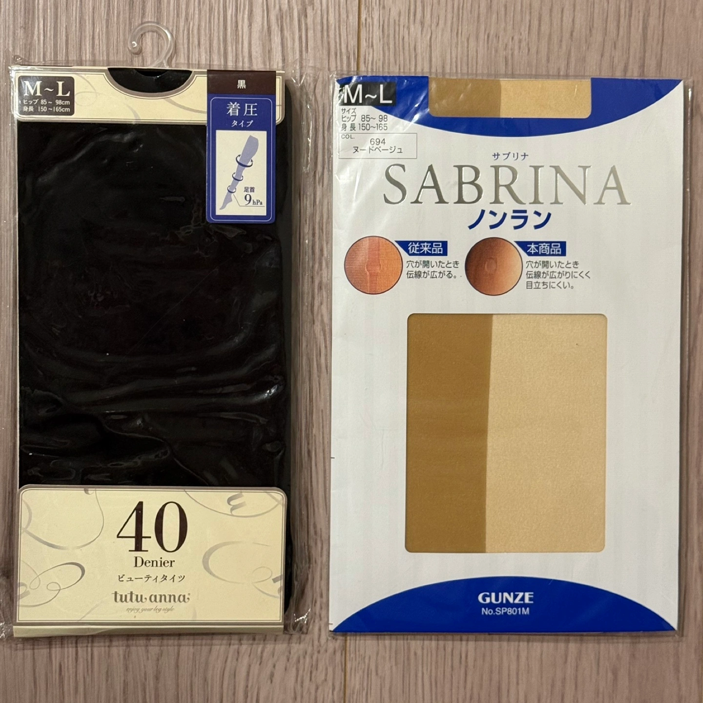 tutuanna チュチュアンナ ビューティタイツ 着圧タイプ 40デニール 黒 GUNZE グンゼ 伝線しにくい SABRINA ノンラン ヌードベージュ どちらもM〜Lサイズ ヒップ 85〜98 身長 150〜165 引き出しの中で保管していましたが、外装ビニールのシールやセロテ ープが開いた状態になっています。 未使用ですが、完全な未開封品ではないので気にならない方にお譲りします。