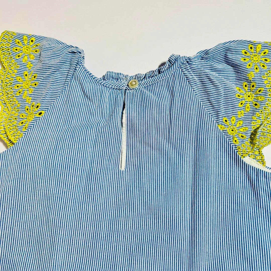 サイズ:100サイズ(98センチ表記) 年齢3Y(3歳) 色:サックス・オフストライプ•ブルー•ストライプ 状態:シミ無し 記名:なし ジャンル:Girl 後ろボタンあきです。実際のサイズ表記は98cmです。 サイズアウトでの出品です。 刺繍がとても丁寧で綺麗です。 目立った汚れはなく、まだお使いいただけます。 おでかけ お祝い 入学式 卒業式 発表会 結婚式 かわいい シック ご希望の方はお気軽にご連絡ください。
