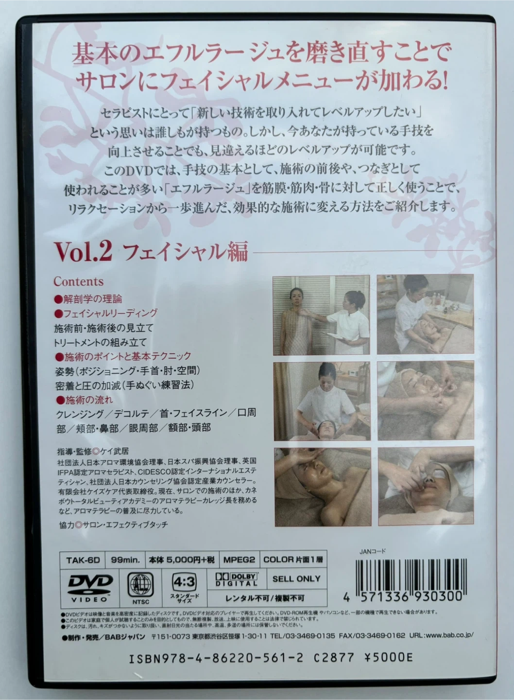 中古品です。 動作確認済み セラピストのフェイシャルトリートメントについて学べます。 Vol.1 フルボディ編も出品しております。 定価:5,000円+税 #ケイ武居 #ケイ武居動画 #アロマセラピスト動画 #フェイシャルトリートメント動画 #トリートメントテクニック動画 #ケイ武居DVD #アロマセラピストDVD #フェイシャルトリートメントDVD #トリートメントテクニックDVD