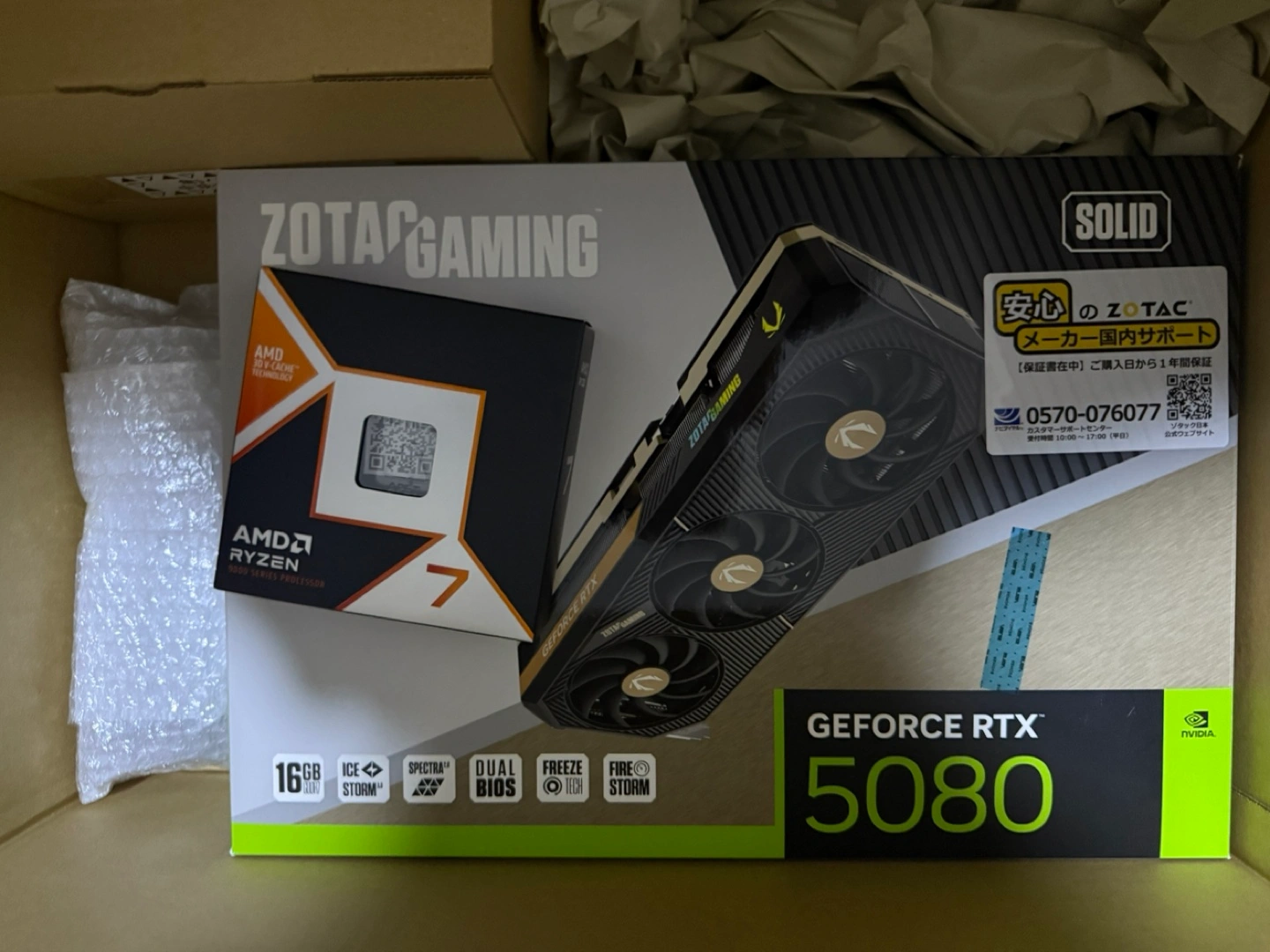 4日使った 新品構成のデスクトップです。 1‘sさんのZESTです。 9800x3d zotac rtx5080 p41 1tb ddr5 5600 16gb x2 b650 tuf 850w gold atx3.0 Windows含まれてない Windows含む場合15000円追加になります 領収書(明細書)お付けします。 Windows含まれてない。 部品の元箱も一緒にお渡しします。