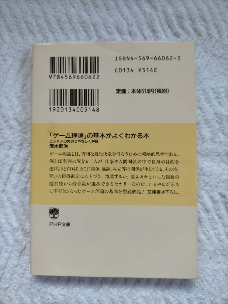 「ゲーム理論」の基本がよくわかる本 ビジネスの実例でやさしく解説 清水武治 PHP文庫 定価: 514 円+税 自宅保管のため細かい傷や折れ・汚れ等がございます。